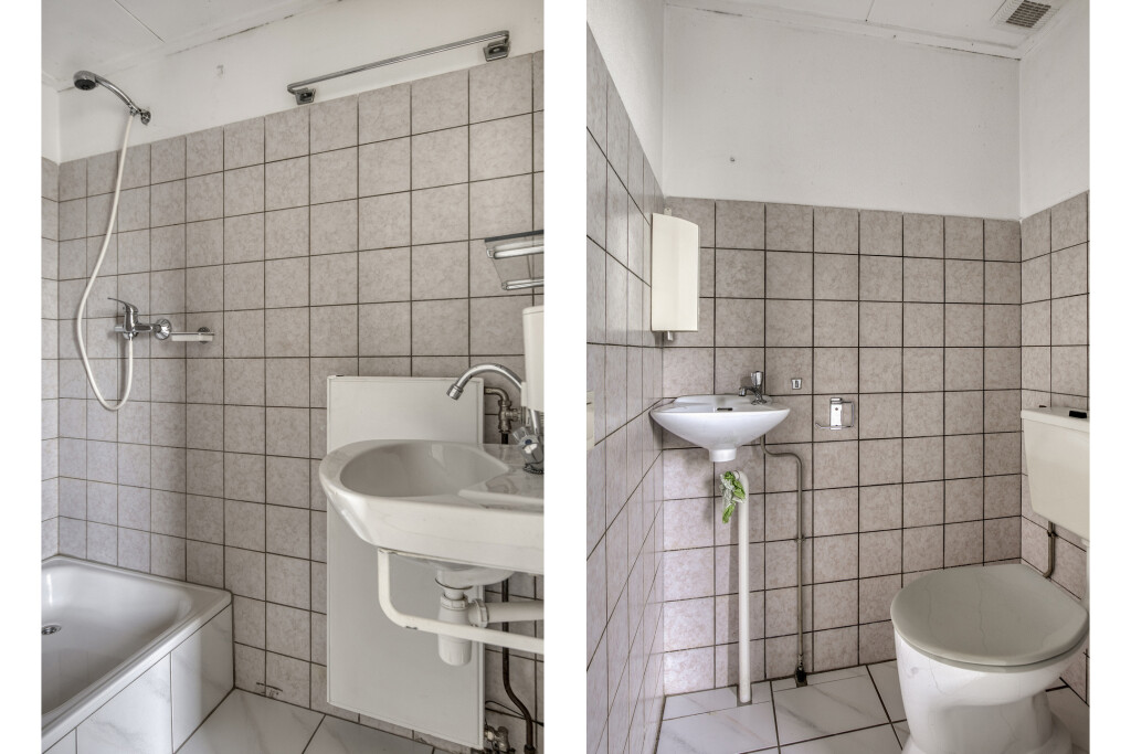 Vanuit de hal zijn tevens de slaapkamer en badkamer op de begane grond bereikbaar, waardoor gelijkvloers wonen mogelijk is. De badkamer is voorzien van een douche en wastafel.