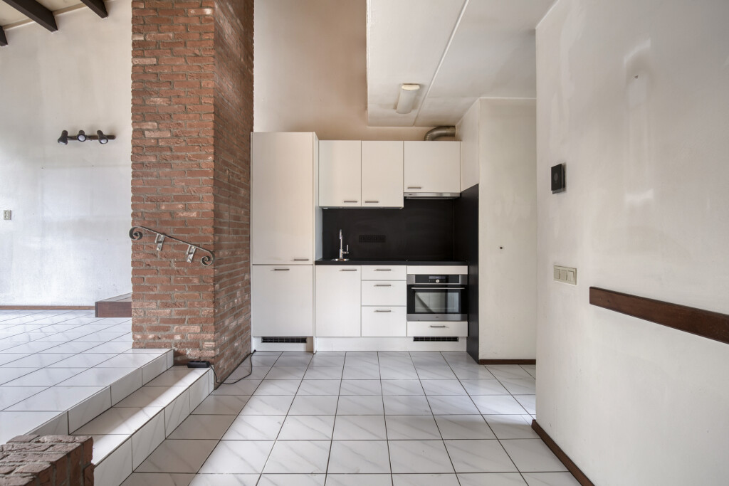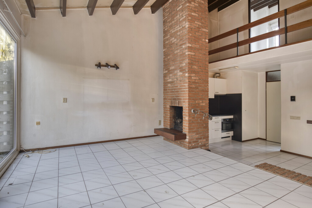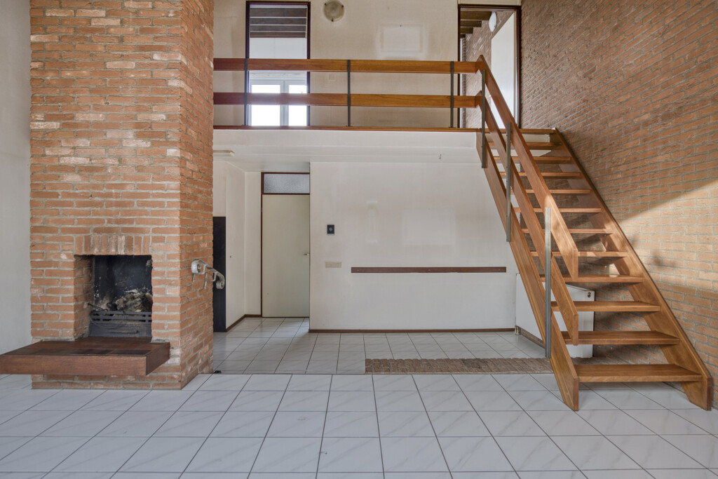 U komt binnen in de hal met toegang tot de berging, een aparte toiletruimte en de woonkamer. De woonkamer is voorzien van een open haard en een open inbouwkeuken. De keuken is uitgerust met een inductiekookplaat, afzuigkap, koelkast en vaatwasser. Via de trap in de woonkamer bereikt u de vide op de verdieping. De woonkamer biedt middels een schuifpui directe toegang tot de achtertuin, wat zorgt voor een prettige verbinding tussen binnen en buiten.