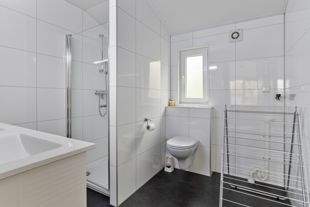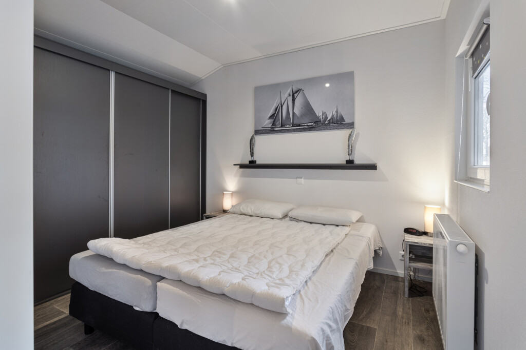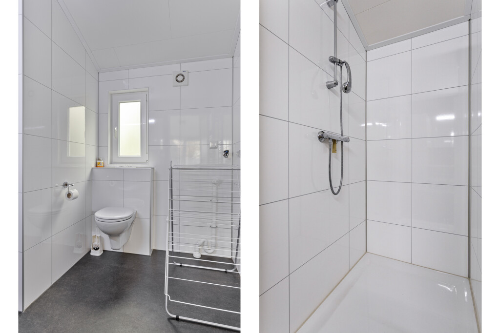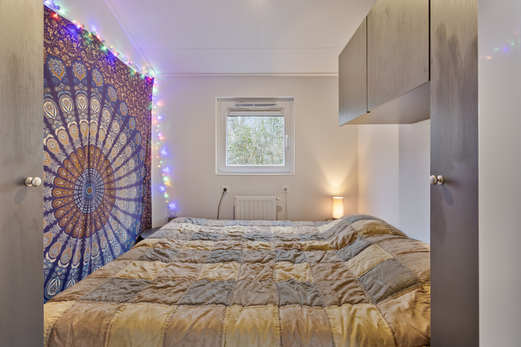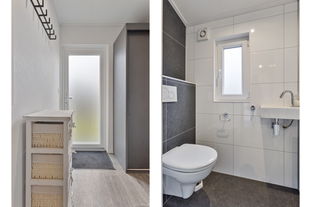 Verder beschikt de bungalow over twee ruime slaapkamers, beide met vaste kastruimte. De badkamer beschikt over een douche, dubbel wastafelmeubel, toilet en een wasmachineaansluiting.