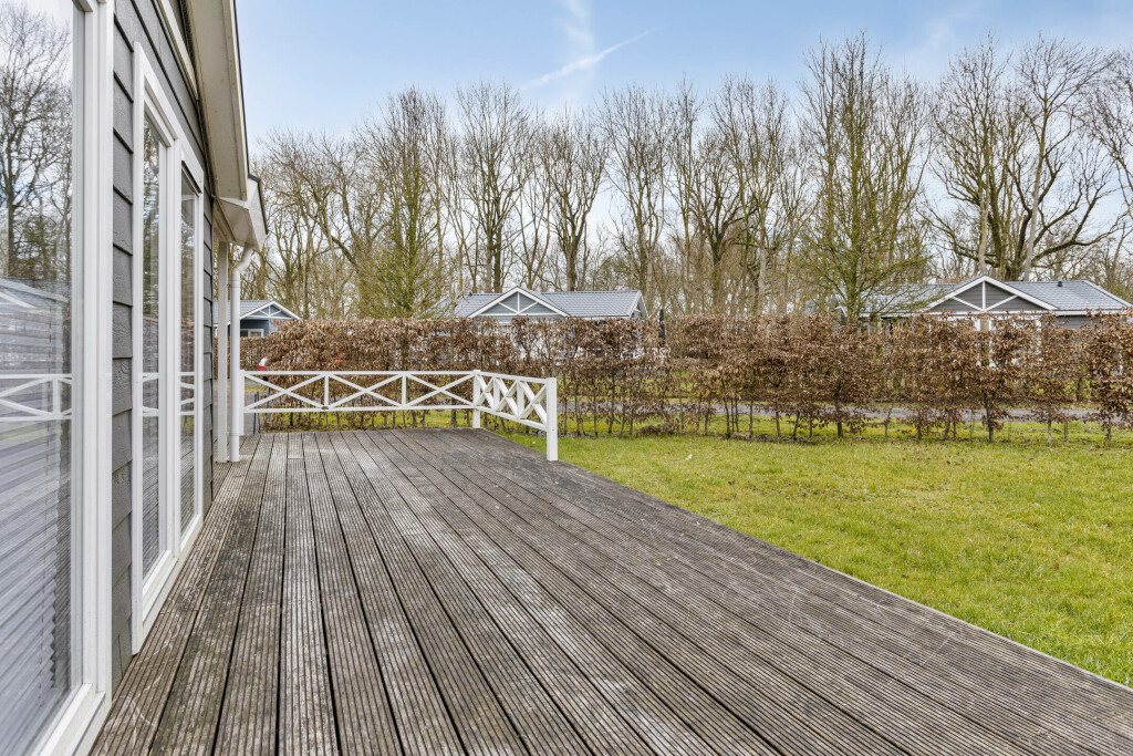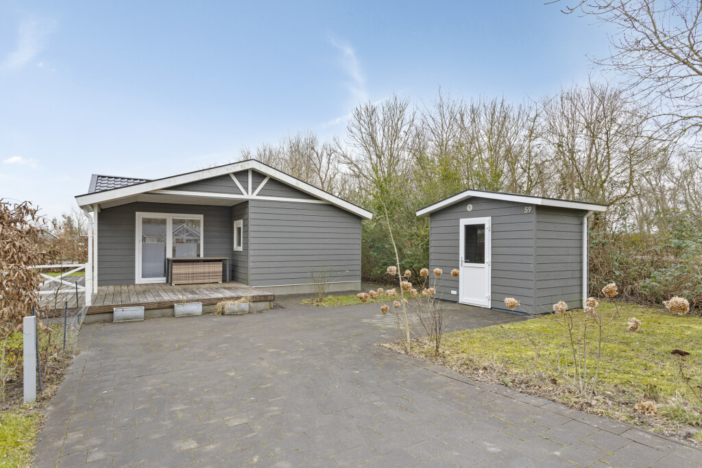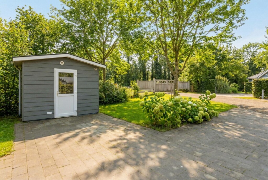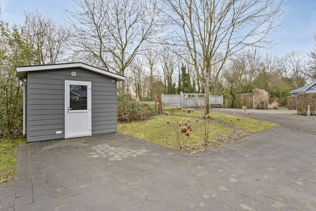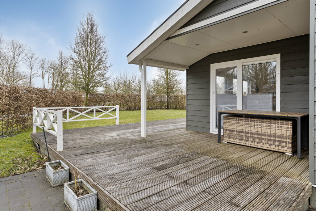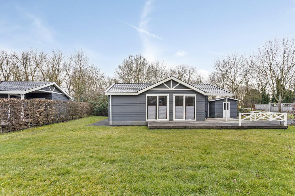 De bungalow is omgeven door een ruime tuin, met een mooi aangelegde veranda die uitnodigt tot het buitenleven. De tuin biedt volop mogelijkheden om een gezellige zit- en eethoek in te richten, perfect voor ontspanning of een gezellig diner in de buitenlucht. Aan de voorzijde van de bungalow vindt u een tuinhuis, dat is voorzien van zowel water als elektriciteit. Bovendien is er parkeergelegenheid op eigen terrein.