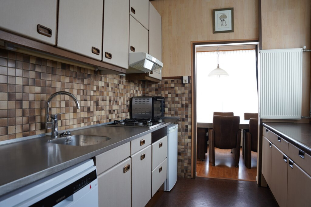 De keuken is praktisch ingericht en voorzien van losse apparatuur.