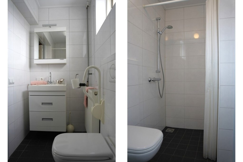 De badkamer is in 2012 vernieuwd en uitgerust met een inloopdouche, toilet en wastafelmeubel.