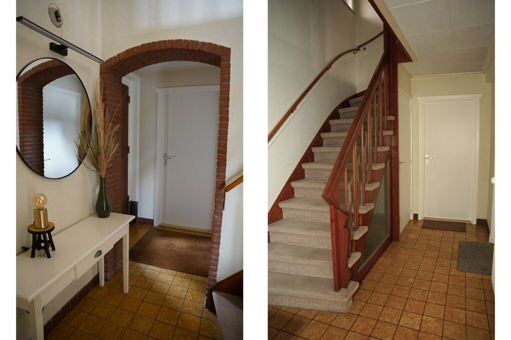 Dit leuke huis verrast direct bij binnenkomst in de ruimtelijke hal. Hier vind je het toilet, de toegang naar de kelderkast, de meterkast en een mooie trap naar de 1e verdieping.