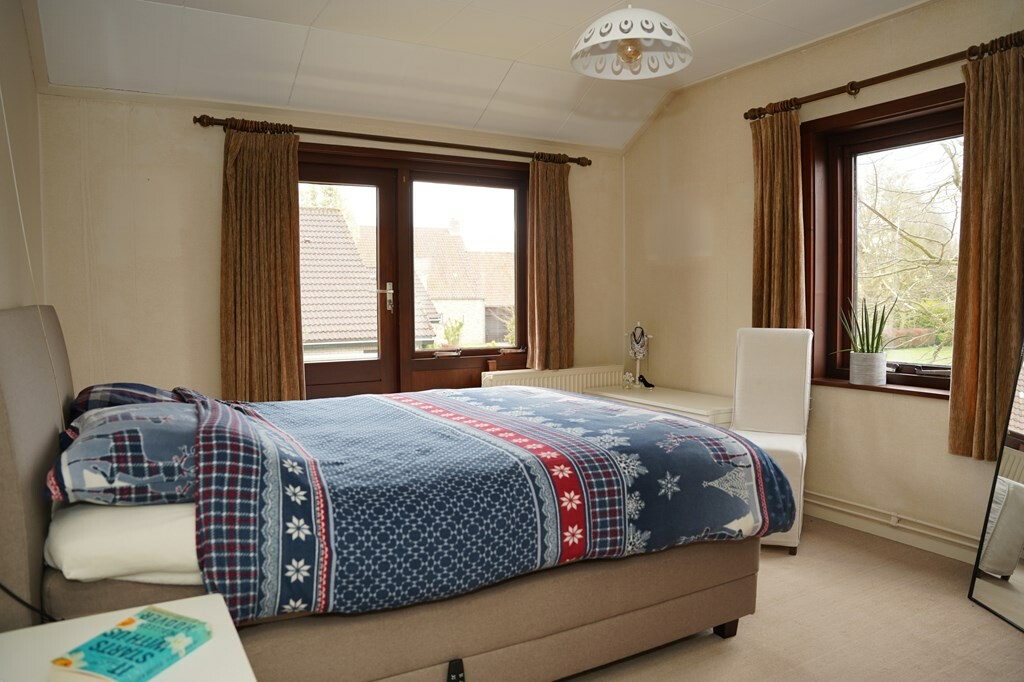 Slaapkamer 4 heeft eveneens een vaste kast en ook hier weer een balkon. Daarnaast is op deze kamer het luik naar de kleine zolder, die bereikbaar is met een vlizotrap.