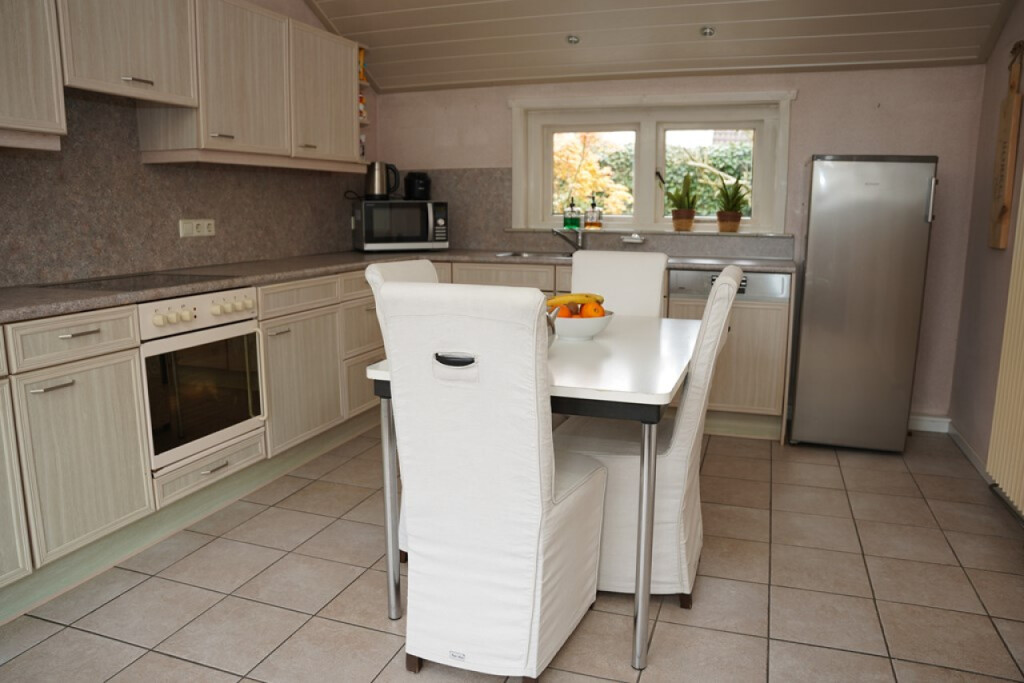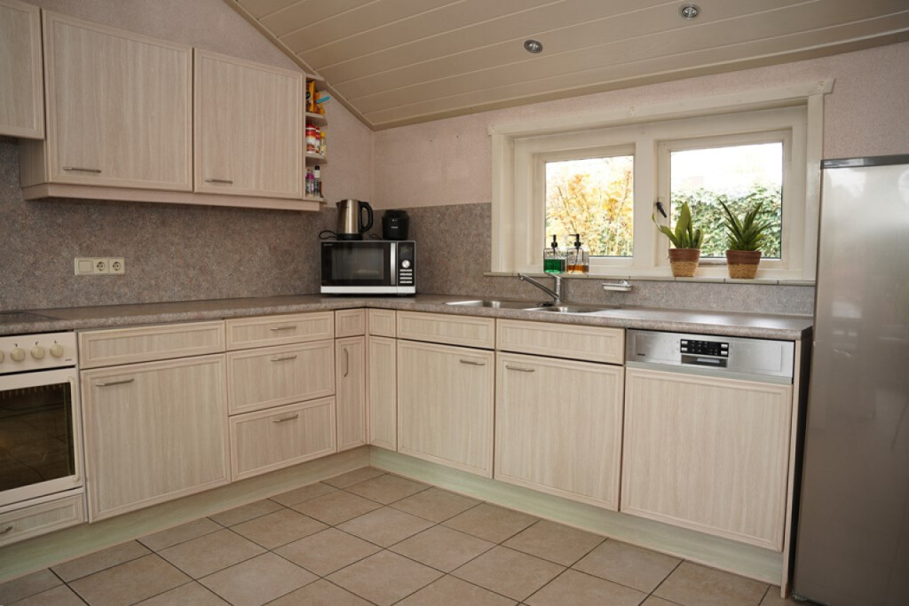 De ruime woonkeuken is uitgerust met alle benodigde apparatuur. Ook hier weer aangenaam veel licht en ruimte.