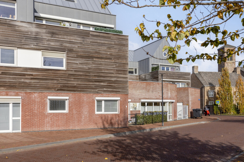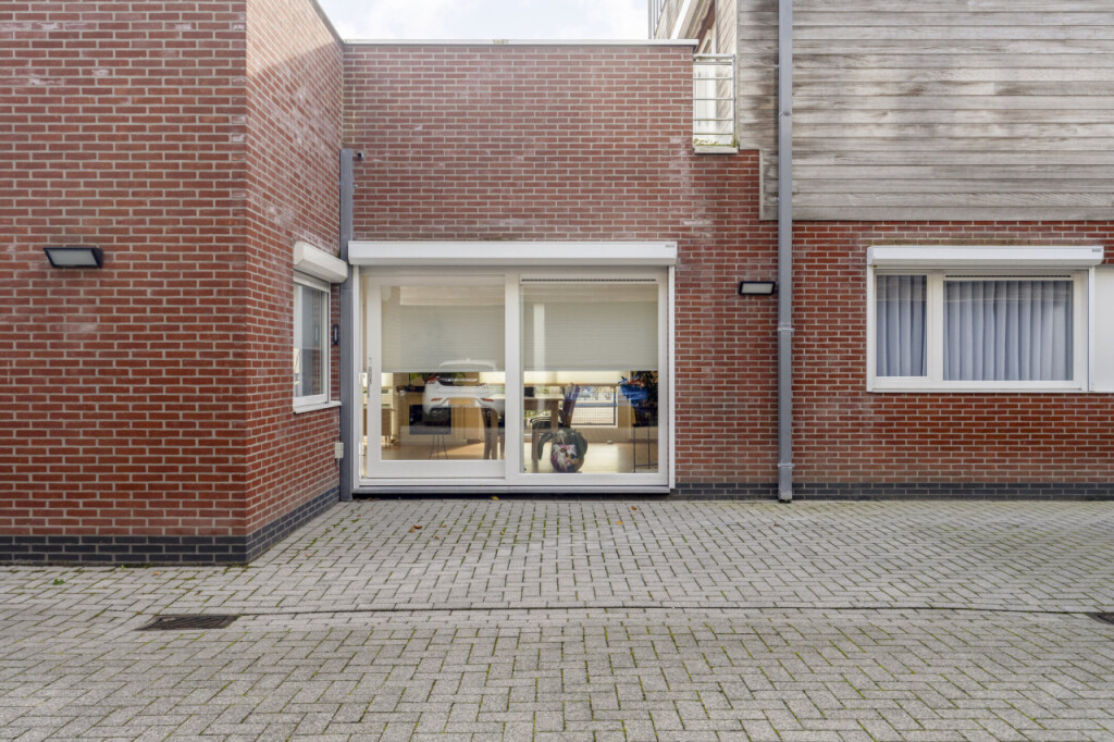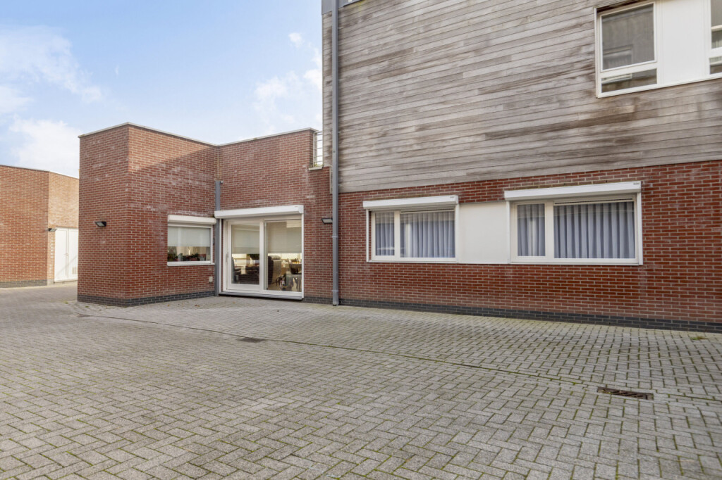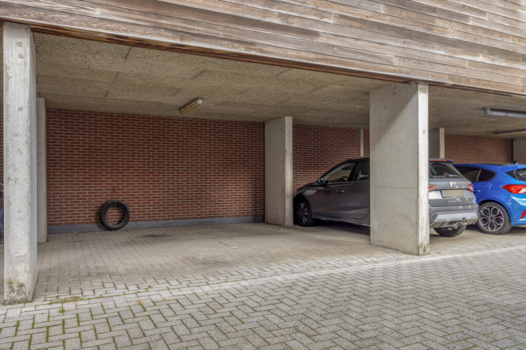 Via de zijingang met elektrische deur bereik je eenvoudig de parkeerterrein, waar één privéparkeerplaats bij het appartement hoort.