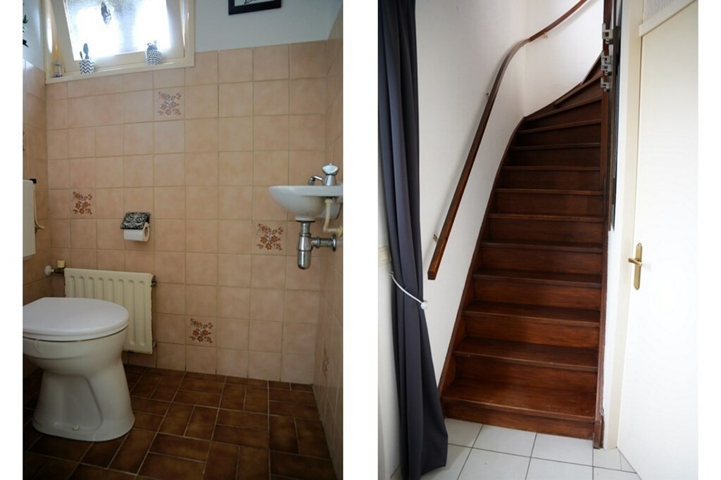 Je komt binnen in de hal met aldaar het toilet, de meterkast en de trap naar de 1e verdieping.