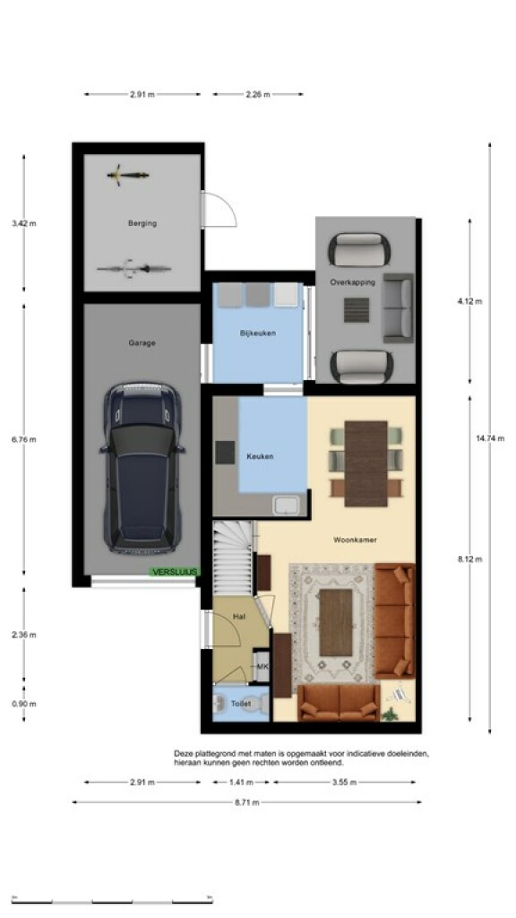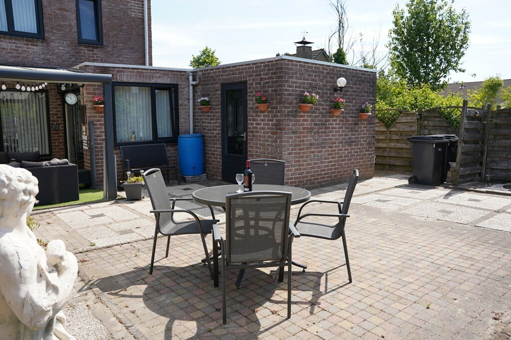 De aangebouwde extra berging voorziet in extra bergruimte voor tuinmeubelen, gereedschap of fietsen.