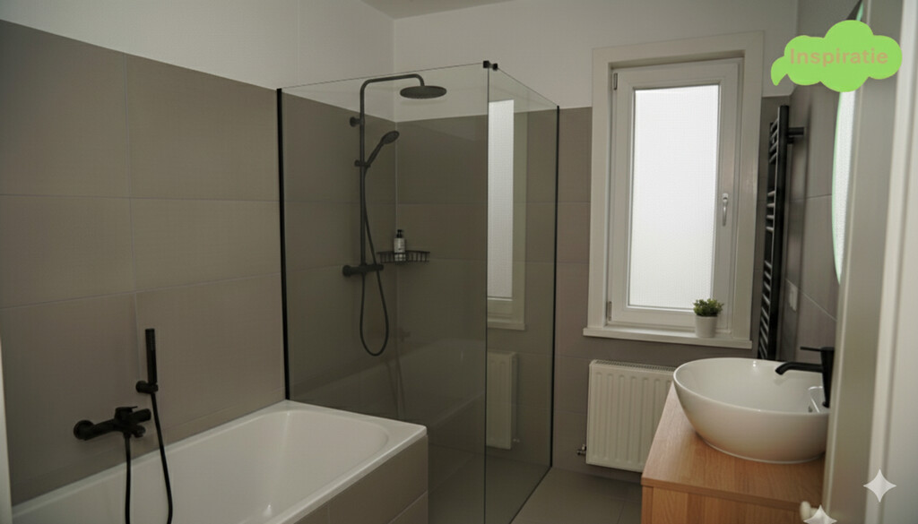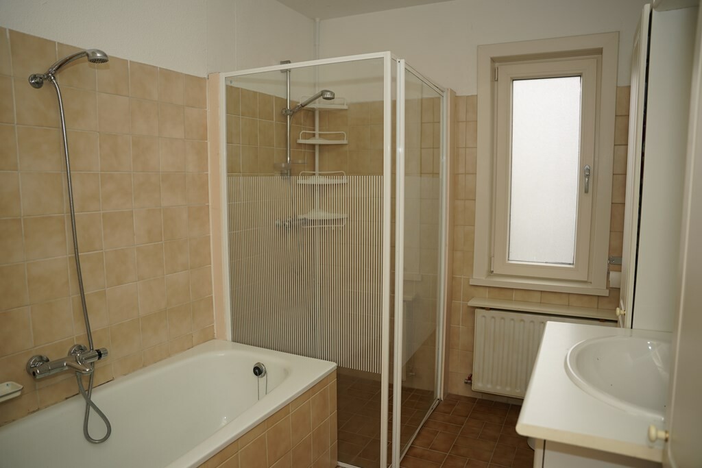 De ruim bemeten badkamer is uitgerust met een douchecabine, een ligbad, een wastafelmeubel en een 2e toilet.