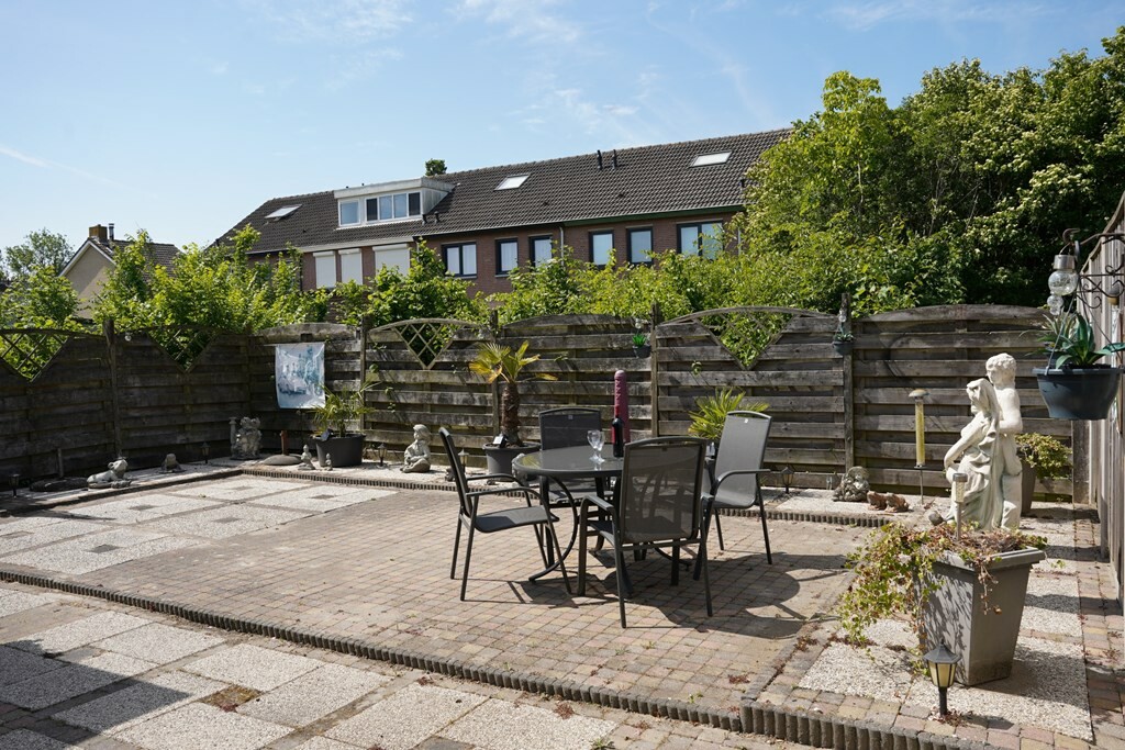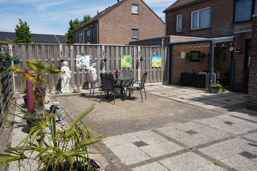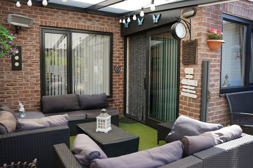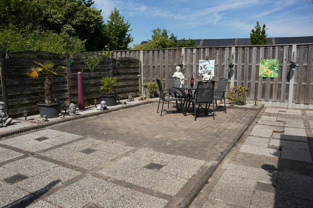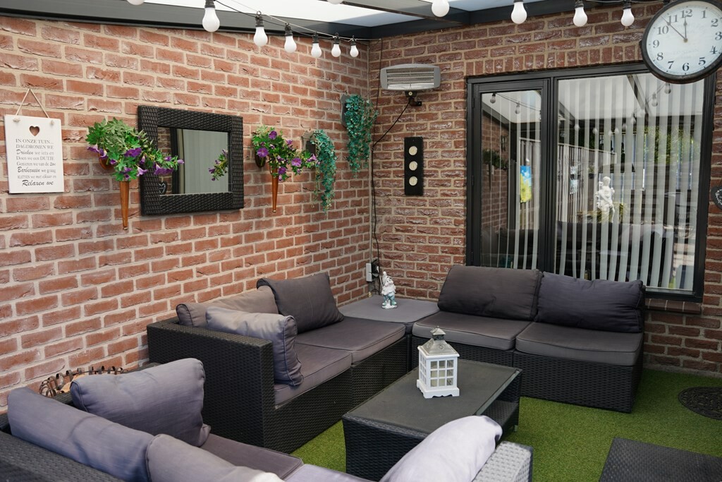 De onderhoudsvriendelijke en volledig omheinde tuin is gelegen op het zuidwesten. Met de sfeervolle overkapping, voorzien van uitschuifbare windschermen, creëer je in een handomdraai een gezellige tuinkamer voor elk seizen.