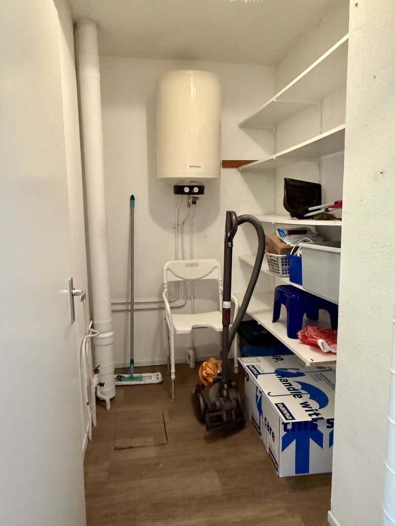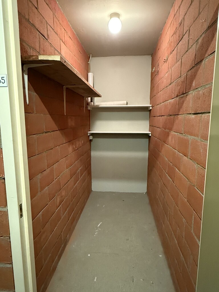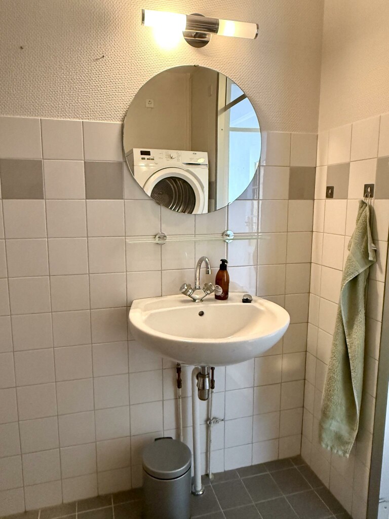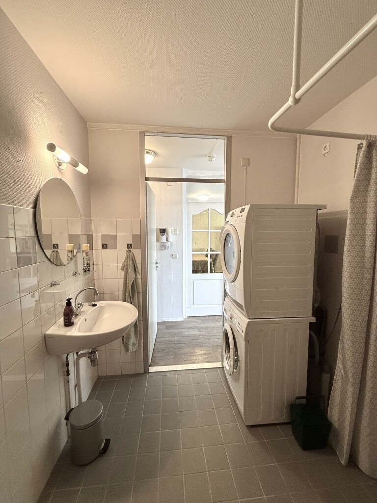 Daarnaast beschikt het appartement over een ruime slaapkamer en een badkamer met douche, wastafel, toilet en een aansluiting voor de wasmachine. Een praktische berging maakt het geheel compleet.