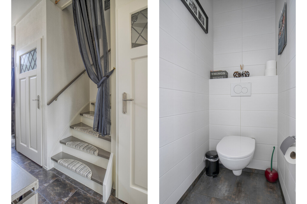 Hier bevinden zich de garderobe, meterkast, het toilet en de trap naar de eerste verdieping.