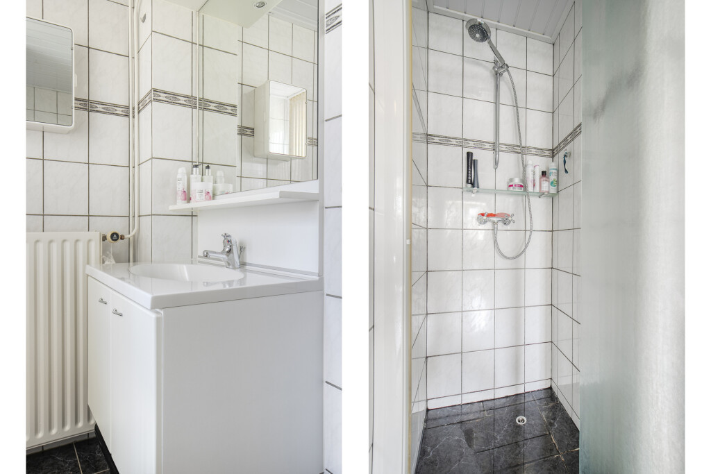 Alle kamers zijn voorzien van rolluiken. De badkamer is praktisch ingedeeld en voorzien van een douche, wastafelmeubel met spiegel en een toilet.