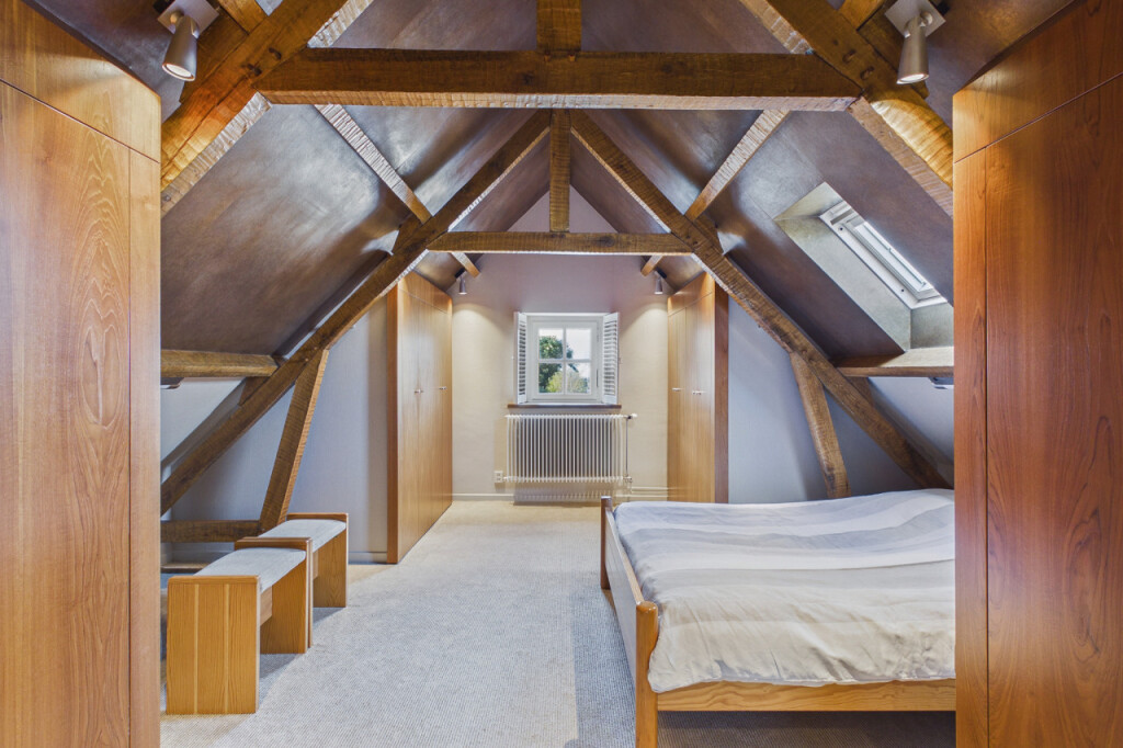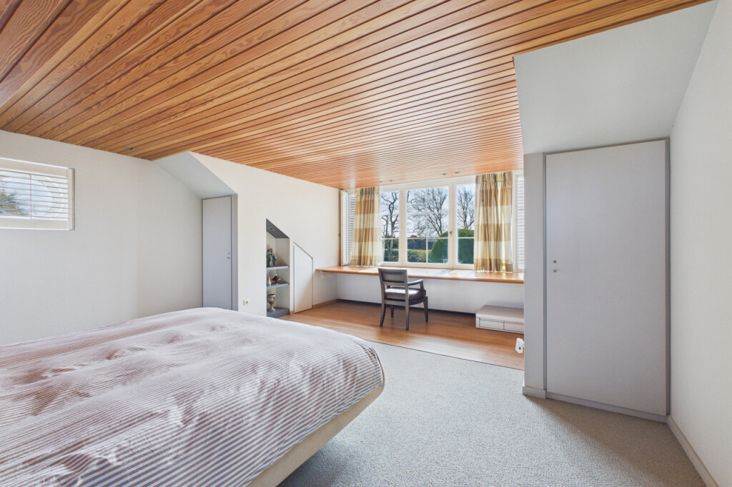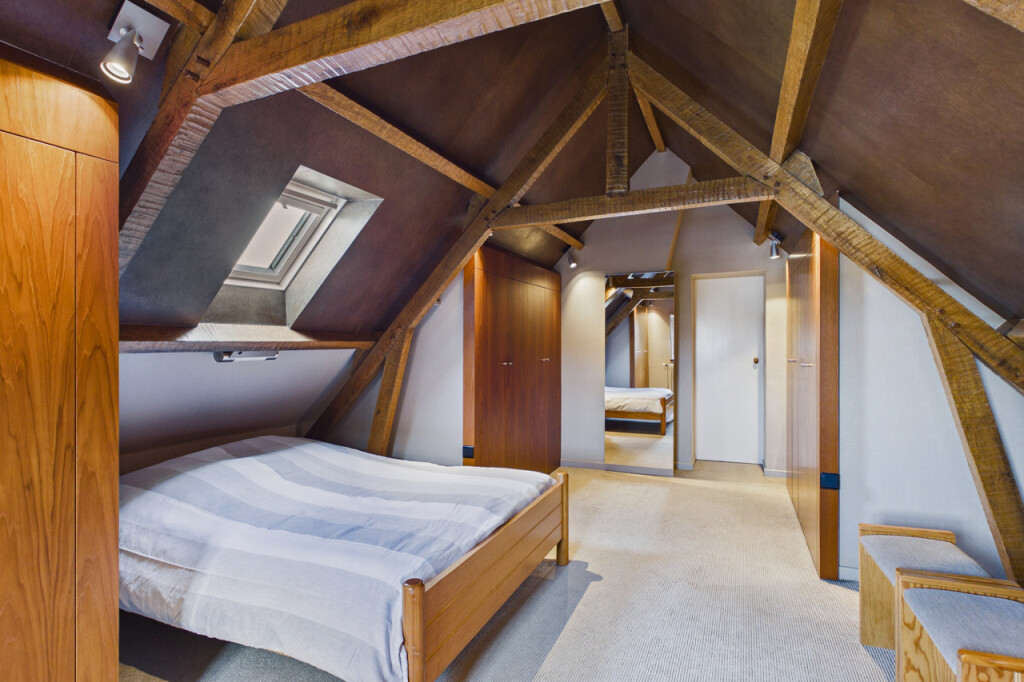Verder vindt u hier een ouderslaapkamer met ergonomisch bureau en dakkapel, evenals een logeerkamer met ruimte voor twee comfortabele tweepersoonsbedden en een op maat gemaakte kastenwand.