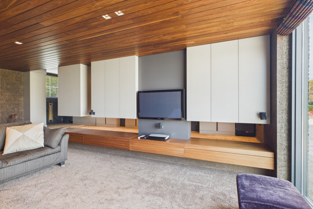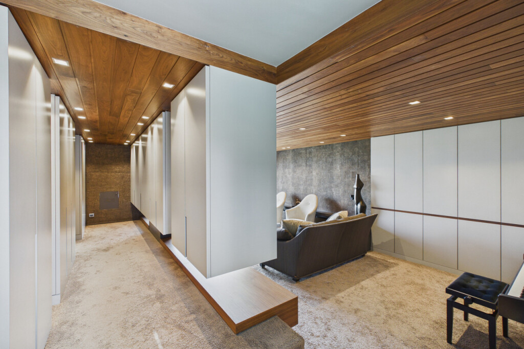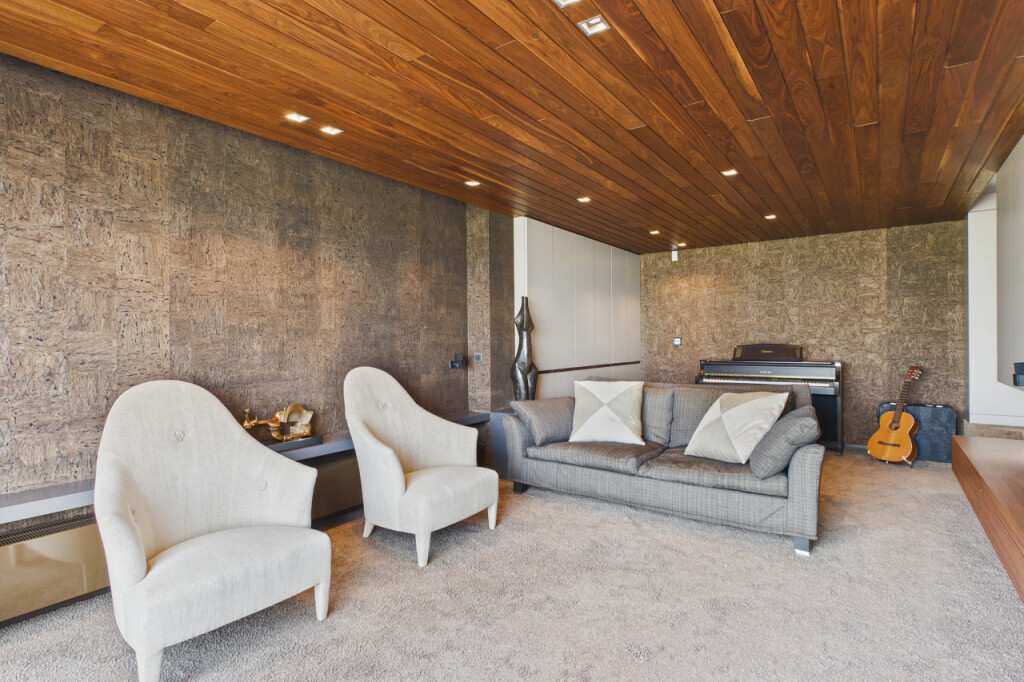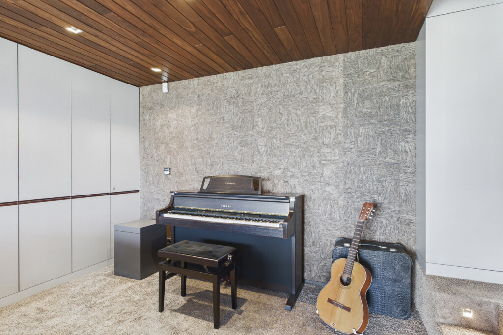De stijlvolle muziek-/tv-kamer is voorzien van kurkwanden, zwevende kasten en heeft een directe toegang tot de tuin. Ook hier geniet u van het vrije uitzicht aan de voorzijde. Uiteraard leent deze ruimte zich ook uitstekend voor andere doeleinden, zoals een kantoor of atelier.