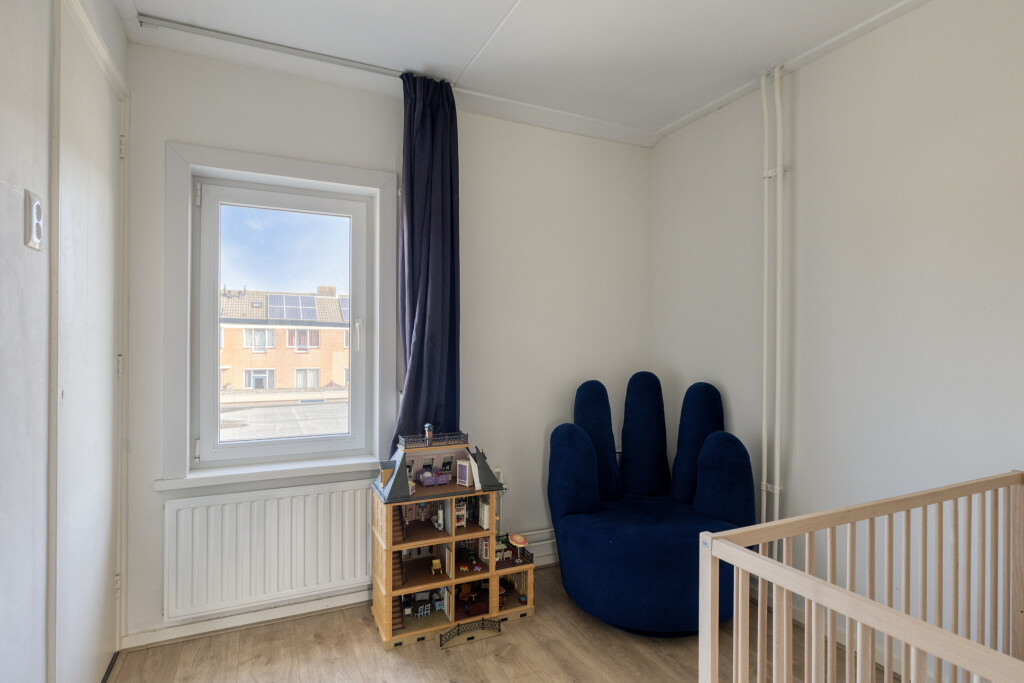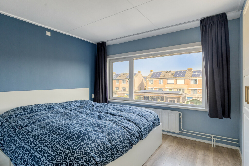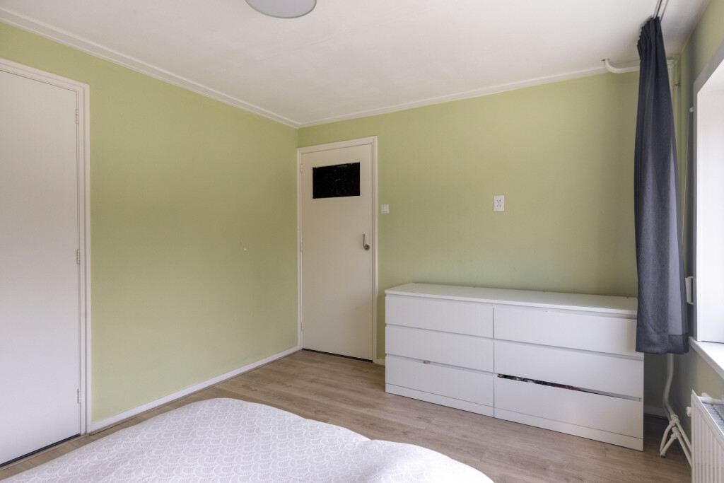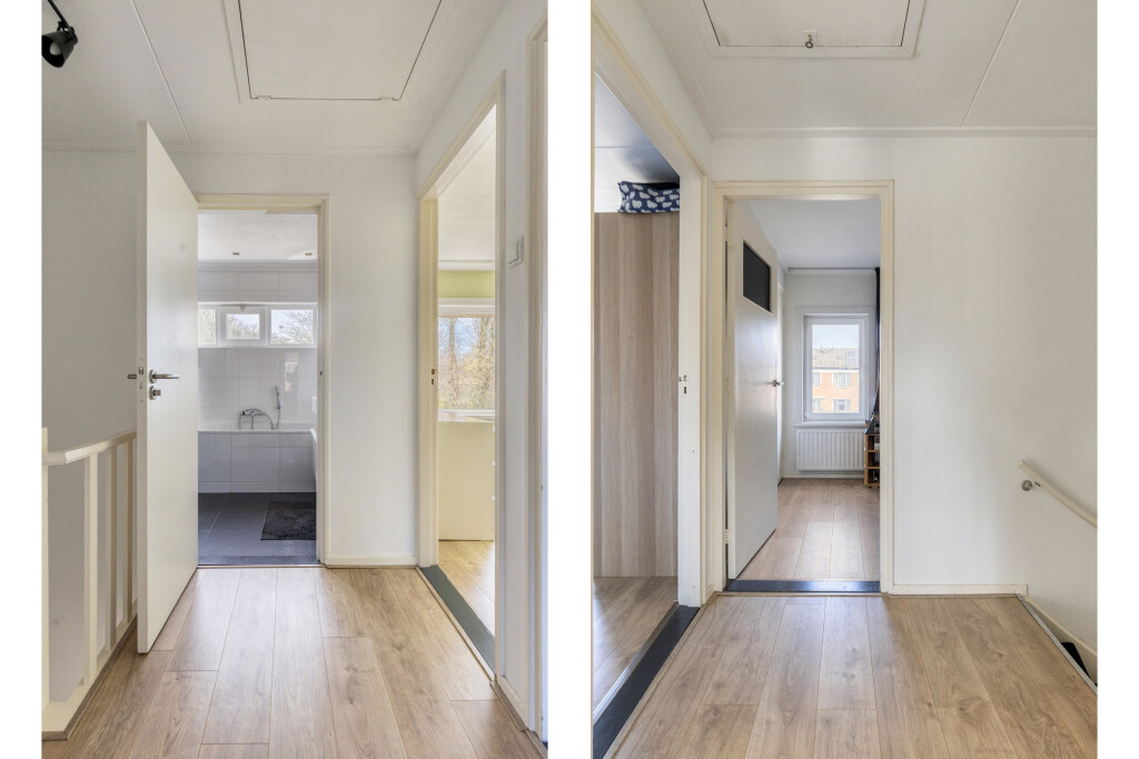 Op de eerste verdieping bevinden zich de overloop, drie slaapkamers en de badkamer. De overloop en slaapkamers zijn voorzien van een laminaatvloer en rolluiken. De grote slaapkamer aan de voorzijde van de woning beschikt over 2 inbouwkasten en de kleinste slaapkamer aan de achterzijde heeft 1 inbouwkast.