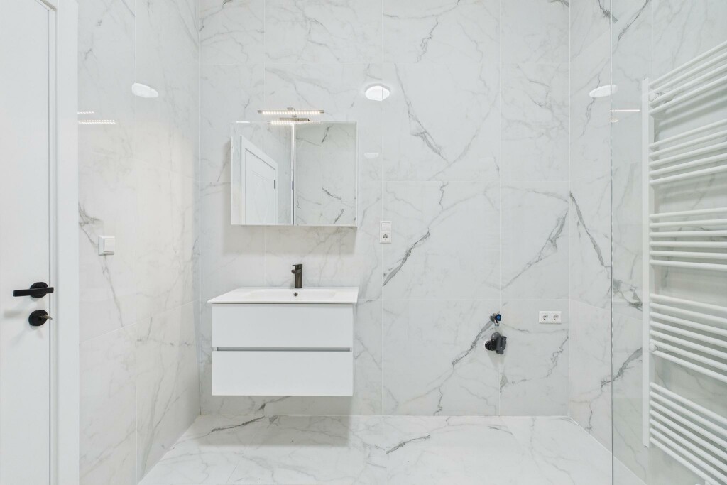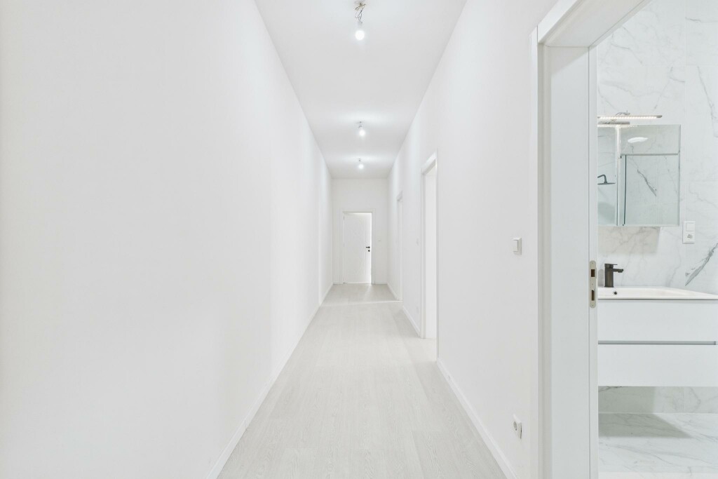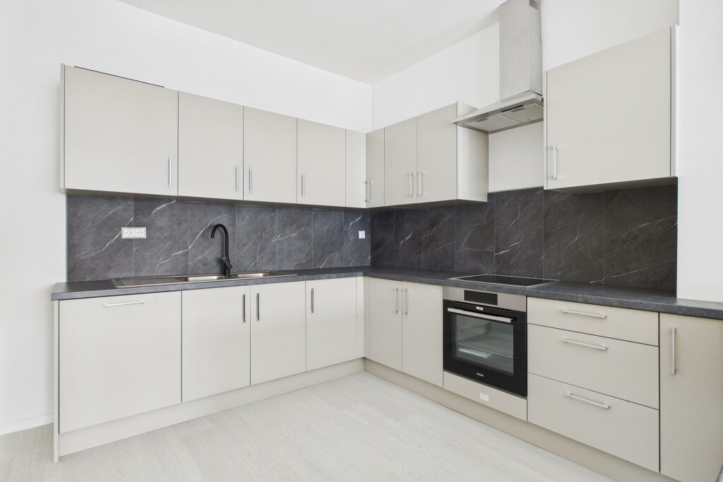 Via de gezamenlijke entree stap je het gebouw binnen en loop je direct naar jouw eigen plekje. Zodra je binnenkomt, word je begroet door een lichte, ruime woonkamer met grote ramen die de zon naar binnen laten stromen. De open keuken met luxe apparatuur en een gezellige ontbijtbar maakt het makkelijk om samen te koken en te ontspannen. Vanuit de hal bereik je drie fijne slaapkamers. Eén daarvan opent via een schuifpui naar jouw eigen tuin – een perfecte plek om de dag te beginnen of te eindigen in alle rust. De badkamer is modern en fris, met een inloopdouche, een mooi wastafelmeubel en een strak designradiator.
