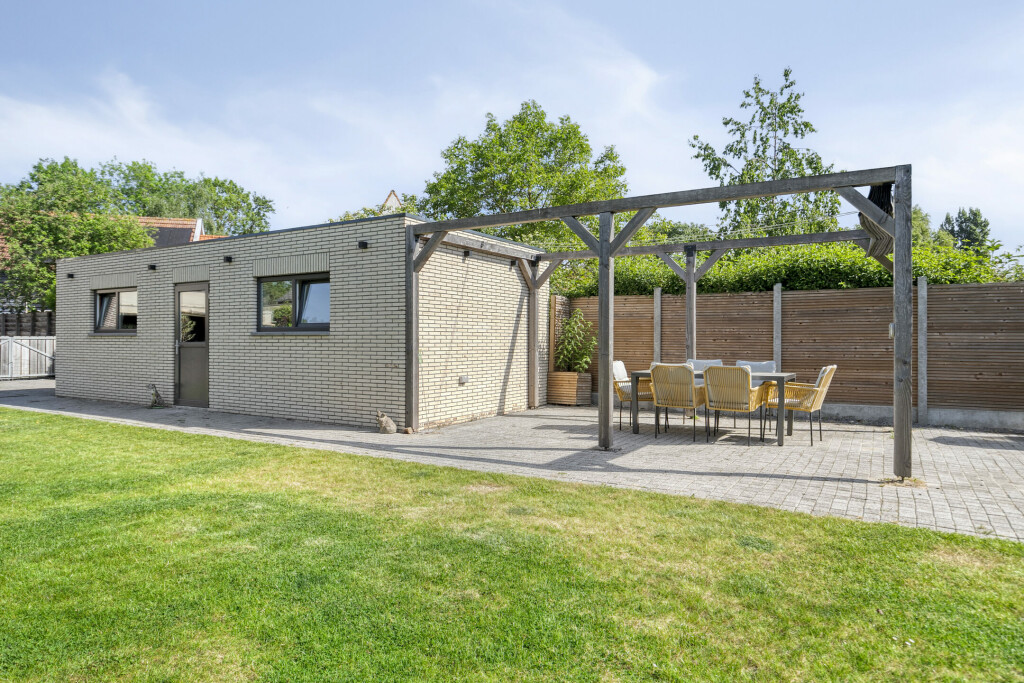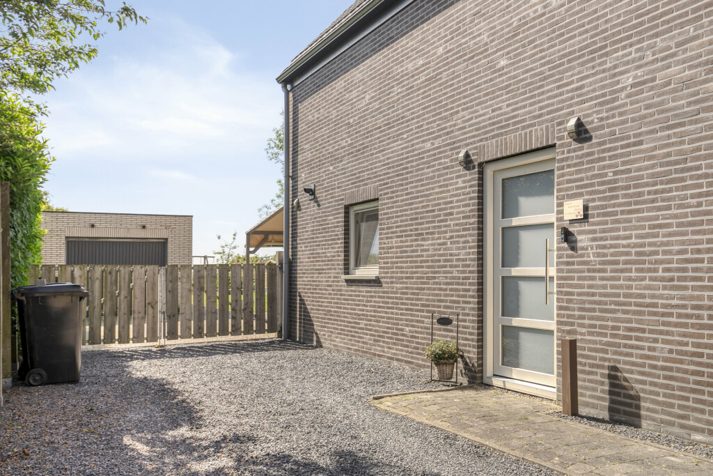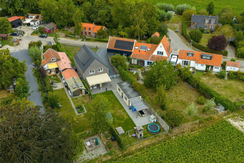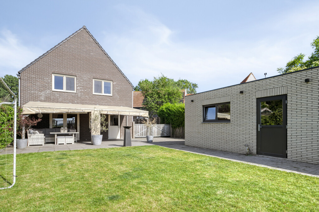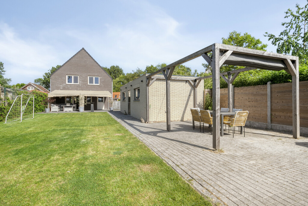 De rondom gelegen tuin biedt volop privacy en zon op elk moment van de dag. De fraai aangelegde achtertuin op het zuidoosten beschikt over een overkapping aan de woning met afsluitbare doeken, een heerlijke plek om beschut te genieten van het buitenleven. Op het ruime terras creëert u eenvoudig een comfortabele zit- en eethoek. De voortuin, gelegen op het noorden, biedt een ruime oprit met parkeergelegenheid en toegang tot de vrijstaande garage met berging in de achtertuin.