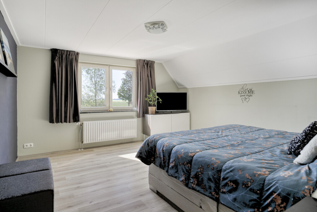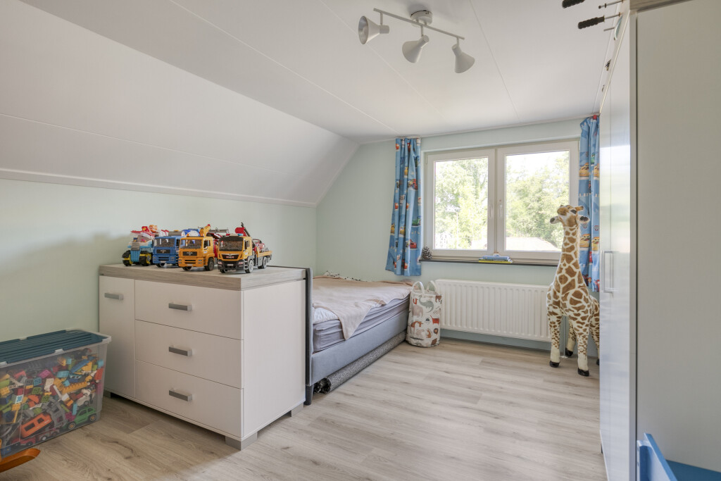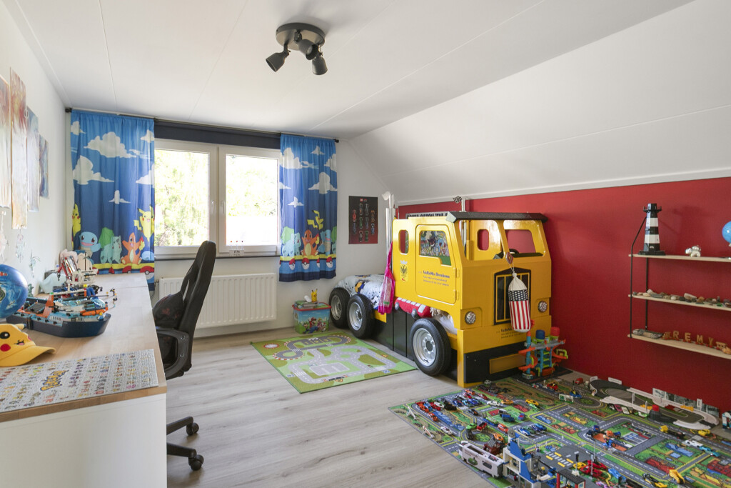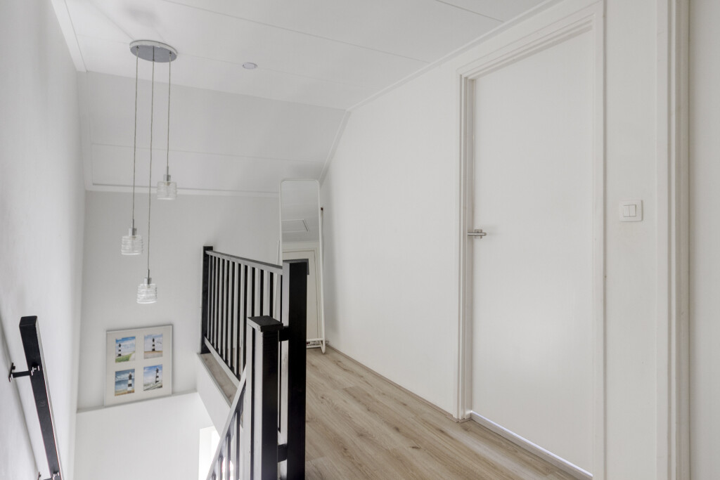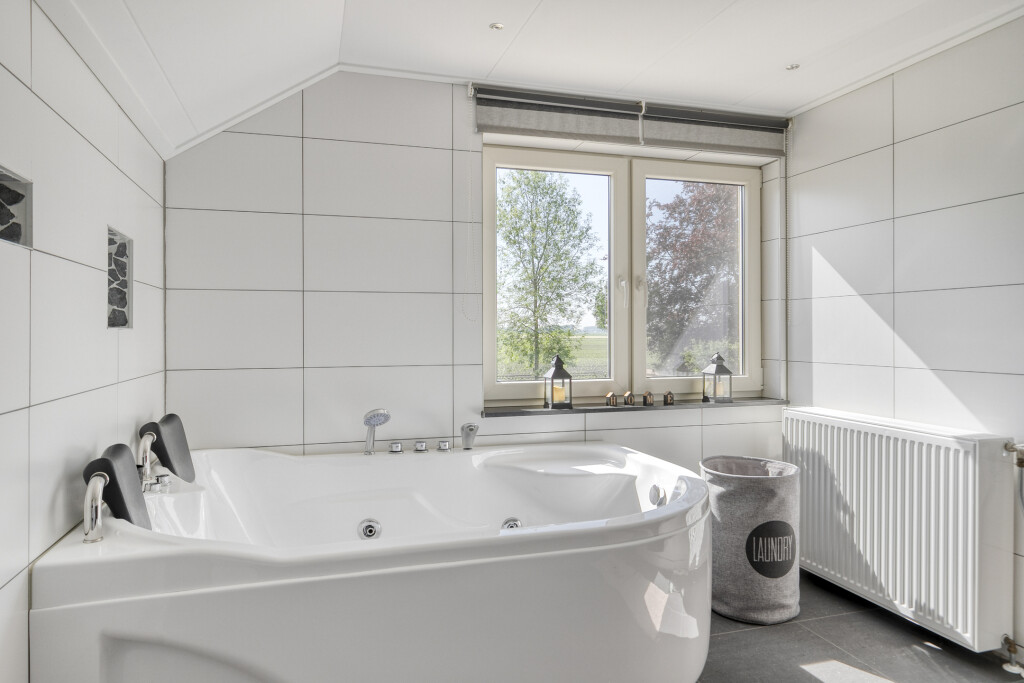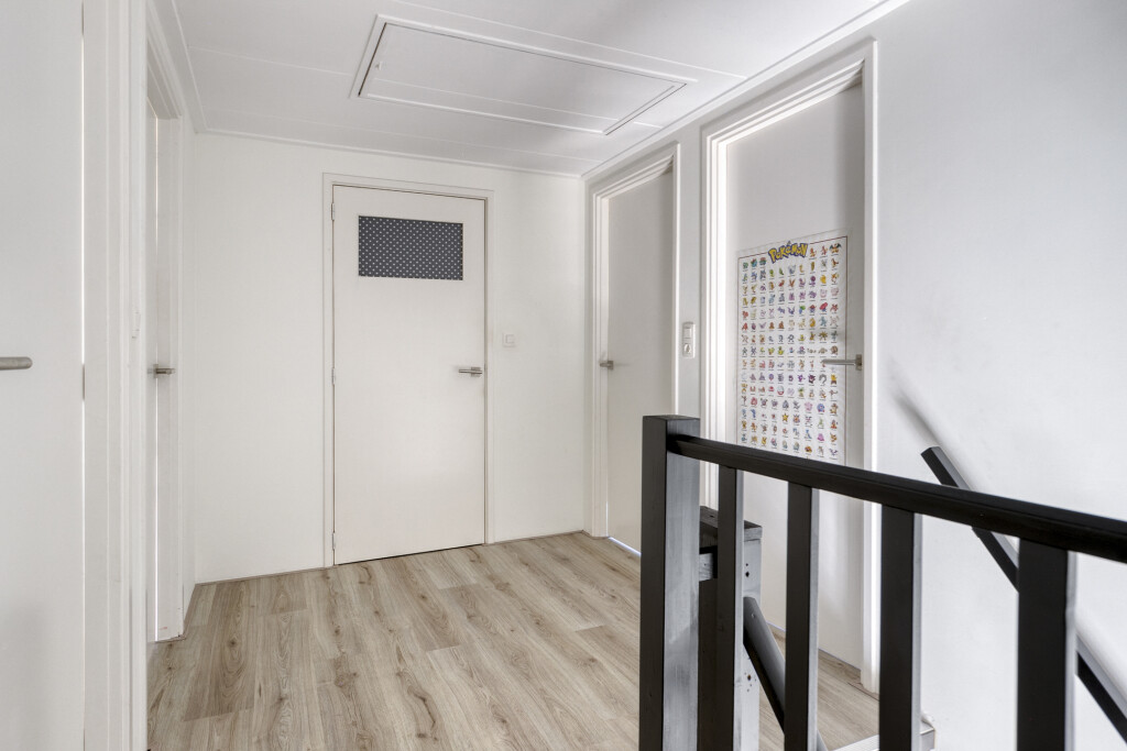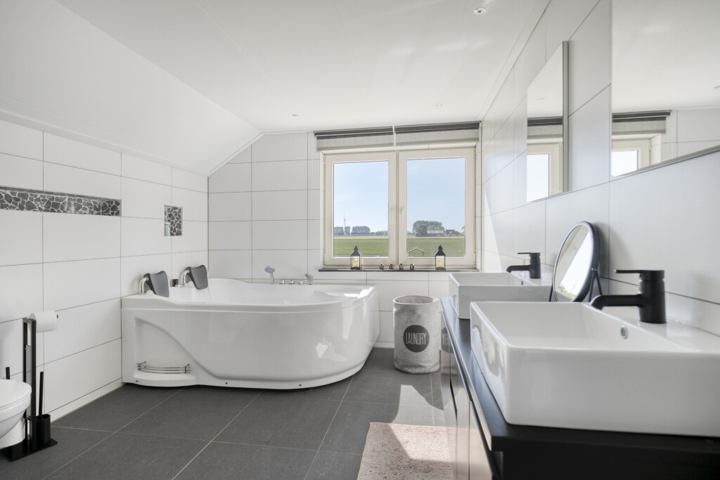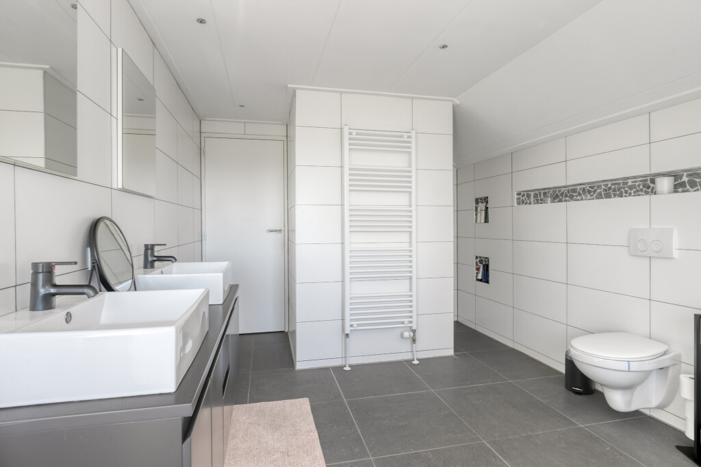Via de overloop op de eerste verdieping bereikt u drie ruime slaapkamers, ideaal voor gezinnen of het inrichten van een thuiswerkplek of hobbyruimte. De badkamer straalt luxe uit met een whirlpool, dubbele wastafel, inloopdouche en tweede toilet. Daarnaast beschikt de verdieping over een praktische walk-in closet, die extra opbergruimte en comfort biedt.