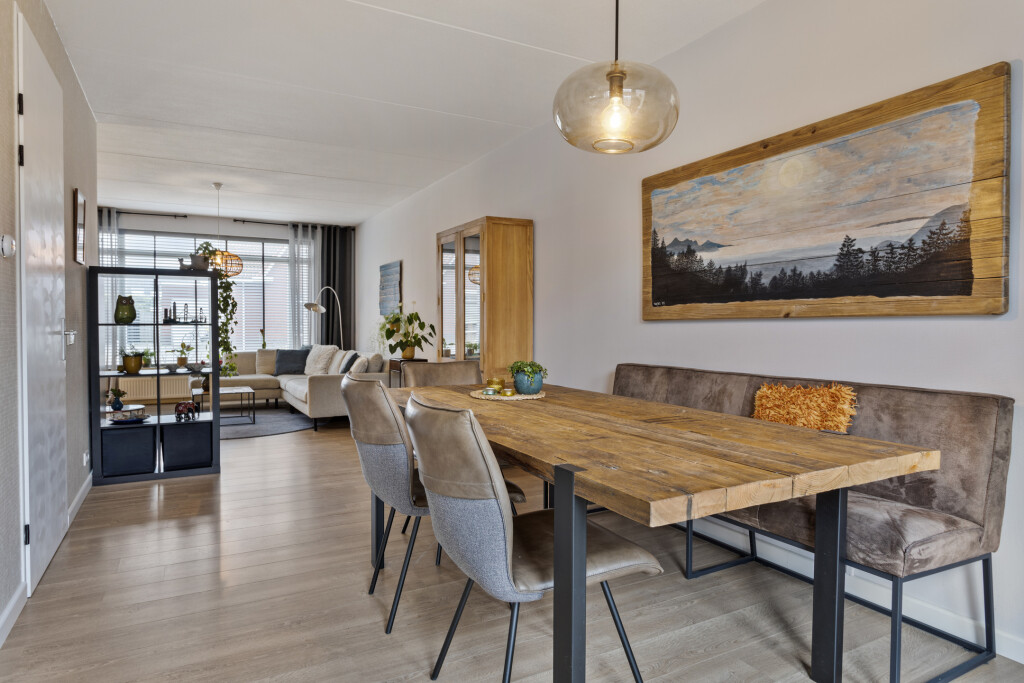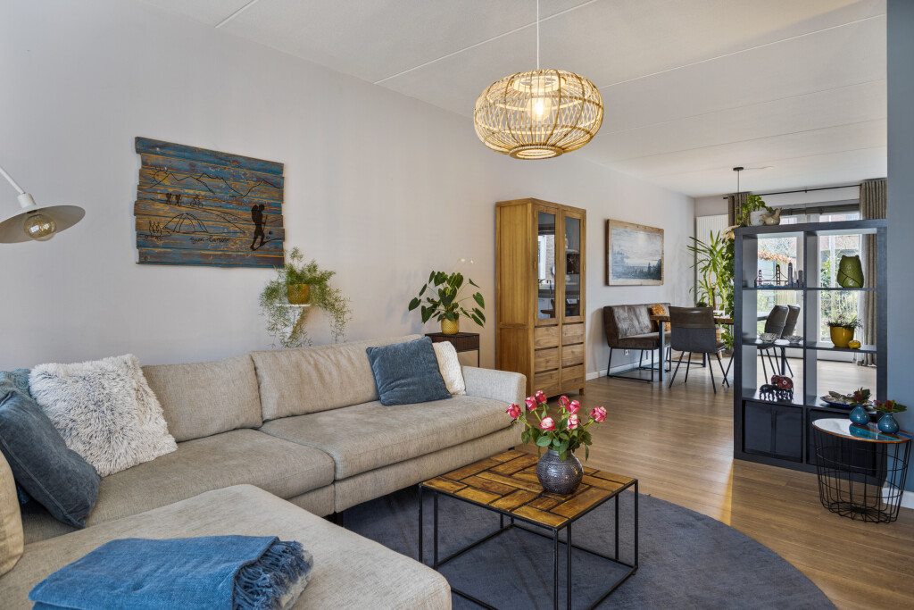De doorzonwoonkamer met dubbele tuindeuren vormt het hart van het huis. Binnen en buiten lopen hier moeiteloos in elkaar over, waardoor je het hele jaar door kunt genieten van een fijne, open woonbeleving. De woning is energiezuinig, uitstekend onderhouden en voorzien van een ruime garage – een compleet plaatje voor wie comfortabel en zorgeloos wil wonen.