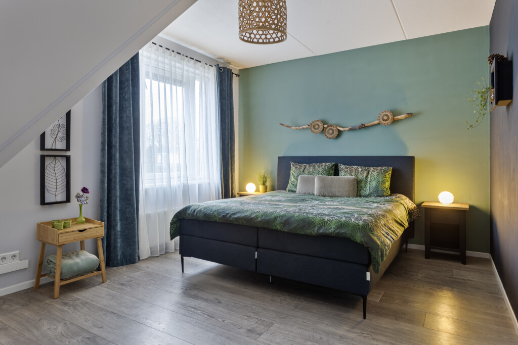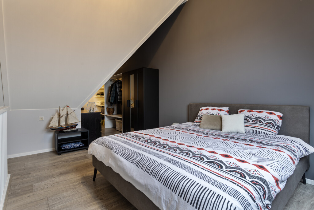 Een groot pluspunt is de aangrenzende inloopkast: praktisch én luxe. Hier kun je al je kleding en spullen overzichtelijk opbergen, waardoor de kamer zelf heerlijk opgeruimd blijft. Achter de knieschotten is bovendien extra bergruimte aanwezig.