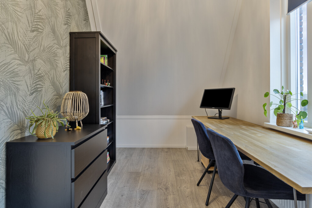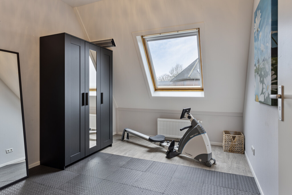 Verder vind je op deze verdieping de technische ruimte met de cv-ketel en aansluitingen voor wasmachine en droger. Alles is netjes weggewerkt, waardoor de ruimte zijn rustige uitstraling behoudt. Dankzij de slimme indeling en de royale afmetingen is deze verdieping niet alleen praktisch, maar ook een volwaardige aanvulling op het wooncomfort beneden.