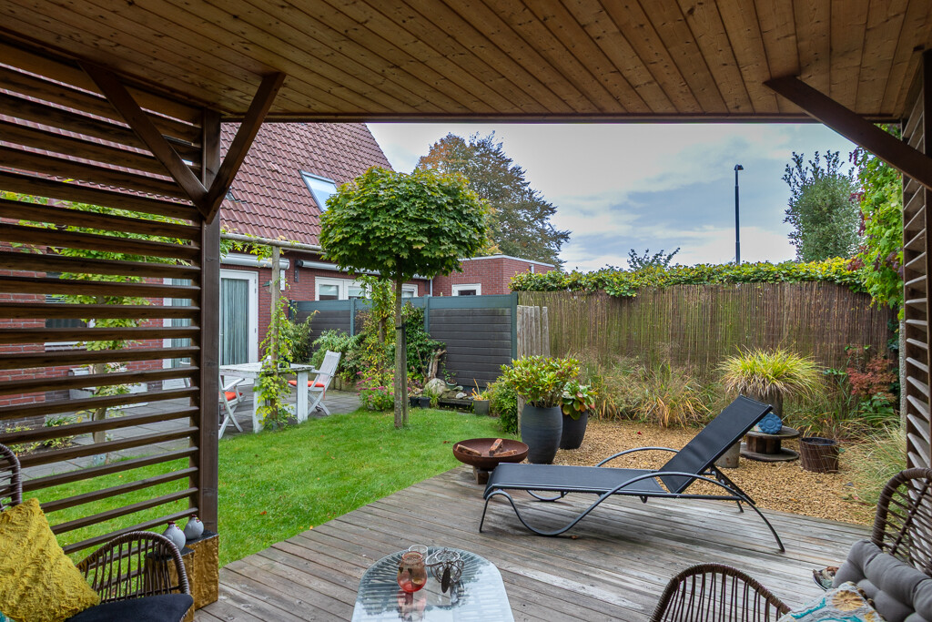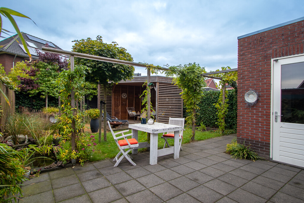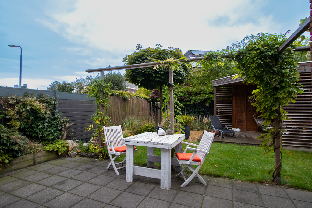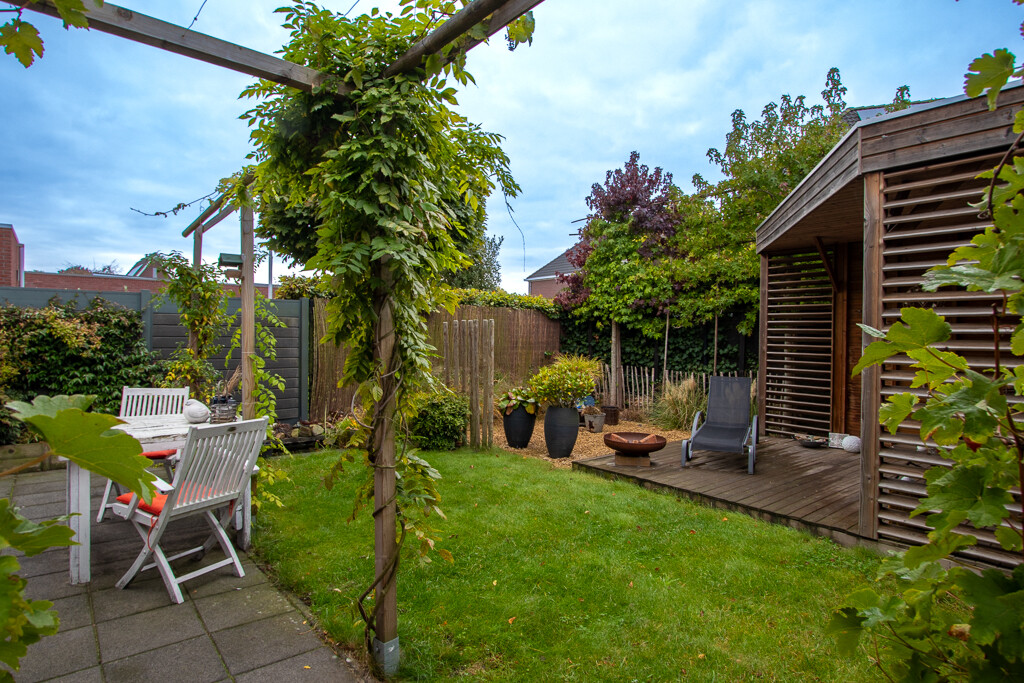 De tuin is absoluut een van de troeven van deze woning. Door de ligging op het westen geniet je hier van veel zon en lange zomeravonden. De verschillende terrassen zorgen ervoor dat je altijd een fijne plek vindt om te zitten – in de zon of juist in de schaduw onder de stijlvolle overkapping. De tuin is met zorg aangelegd, biedt volop privacy en voelt als een verlengstuk van de woonkamer. Dankzij de vrije achterom is de tuin niet alleen mooi, maar ook praktisch in gebruik.
