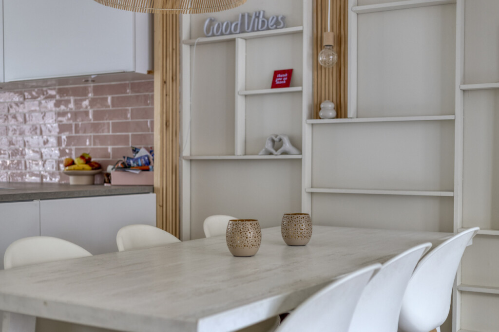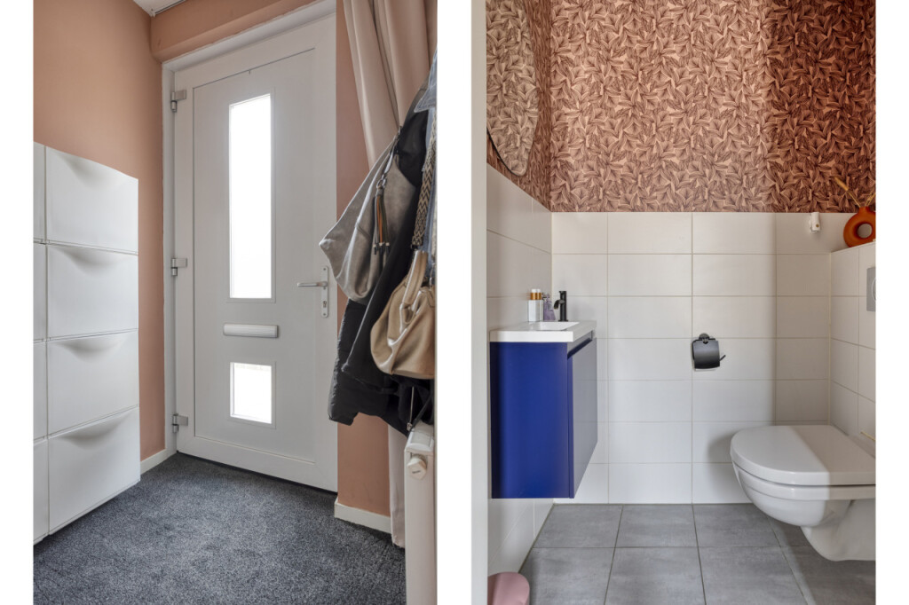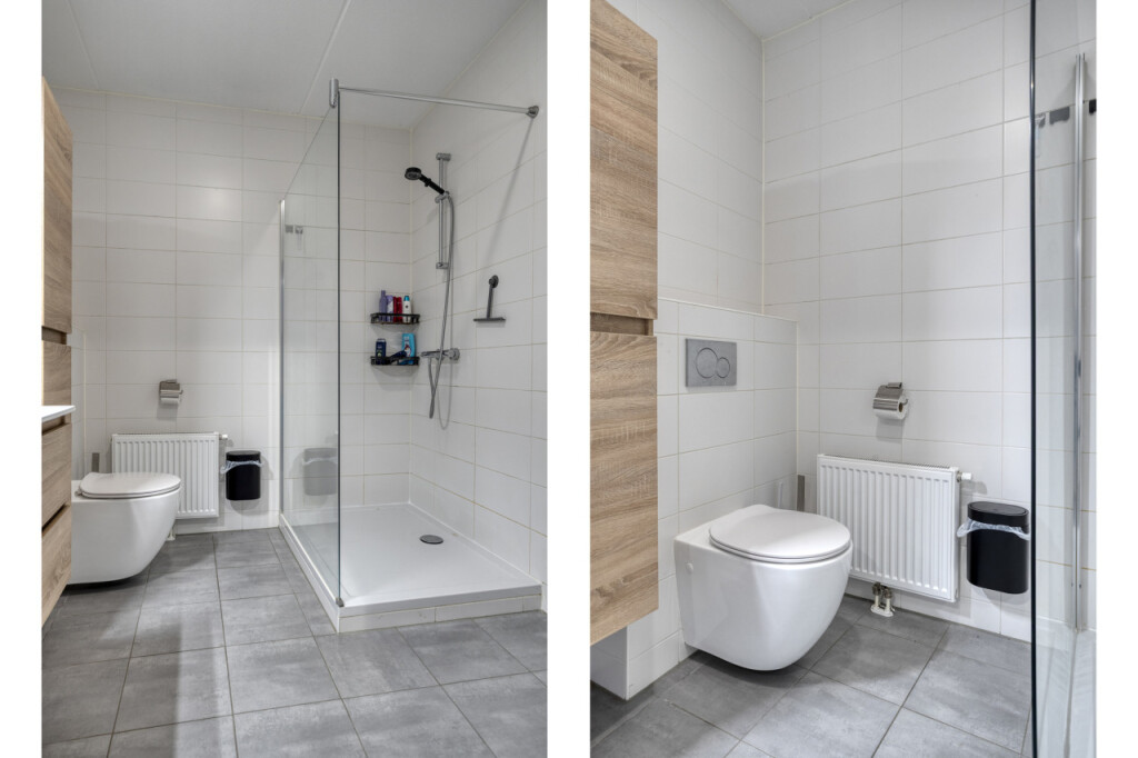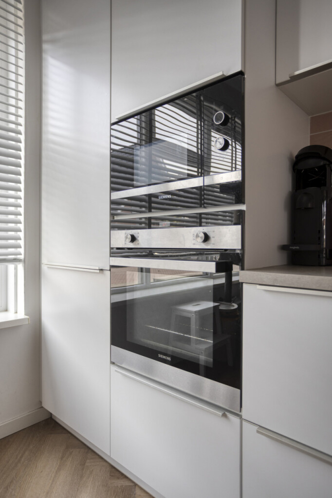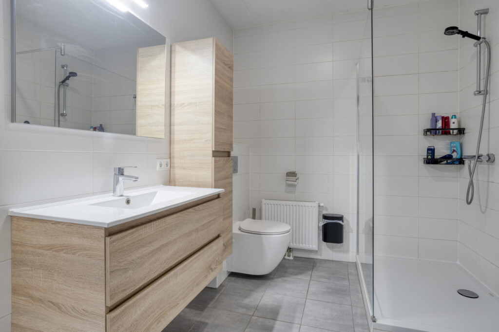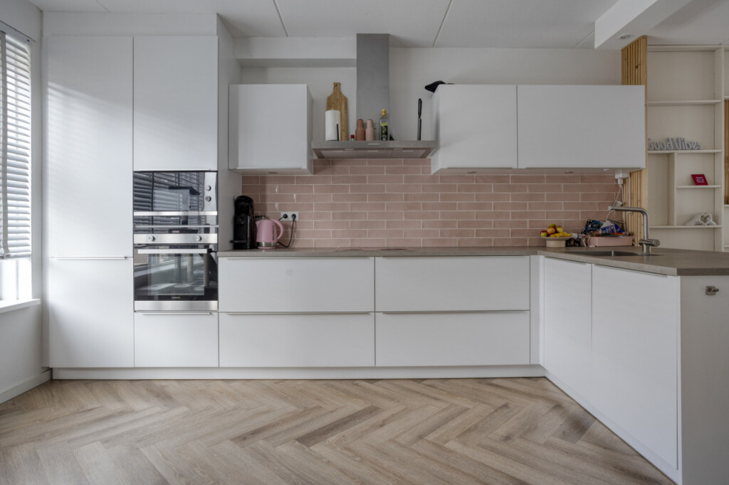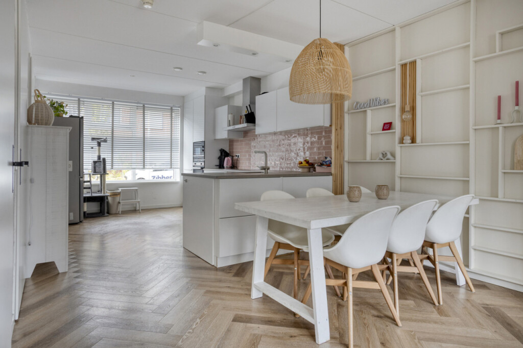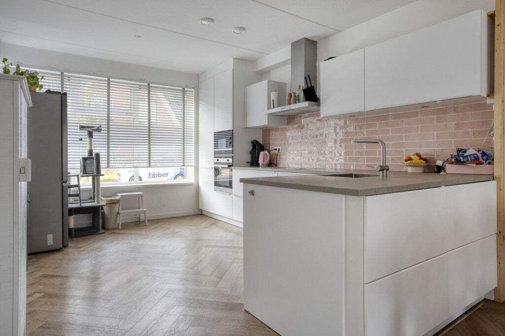Bij binnenkomst in de hal tref je het toilet en de toegang tot de keuken. De ruime hoekkeuken is modern uitgevoerd en van alle gemakken voorzien: een 4-pits inductiekookplaat, vaatwasser, magnetron, oven en een koelkast met vriezer. Dankzij de open verbinding met de woonkamer is dit een heerlijke leefruimte.