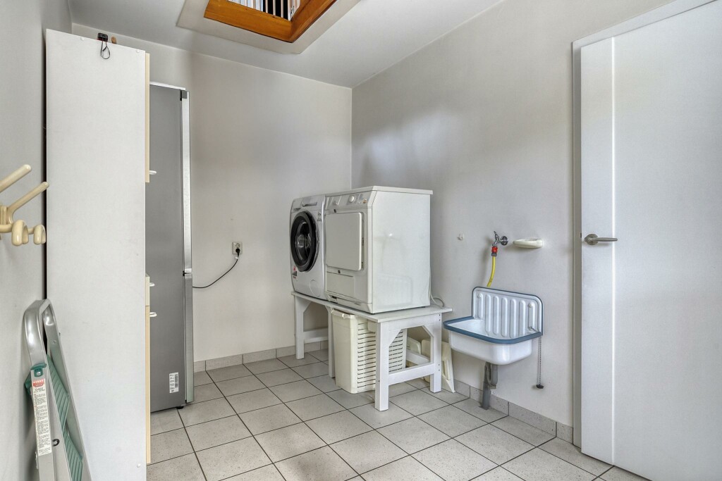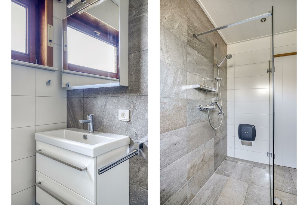 Vanuit de keuken heeft u toegang tot de ruime en handige bijkeuken met een deur naar de tuin en een deur naar de garage. De garage is extra diep en voorzien van een elektrisch bedienbare garagedeur.