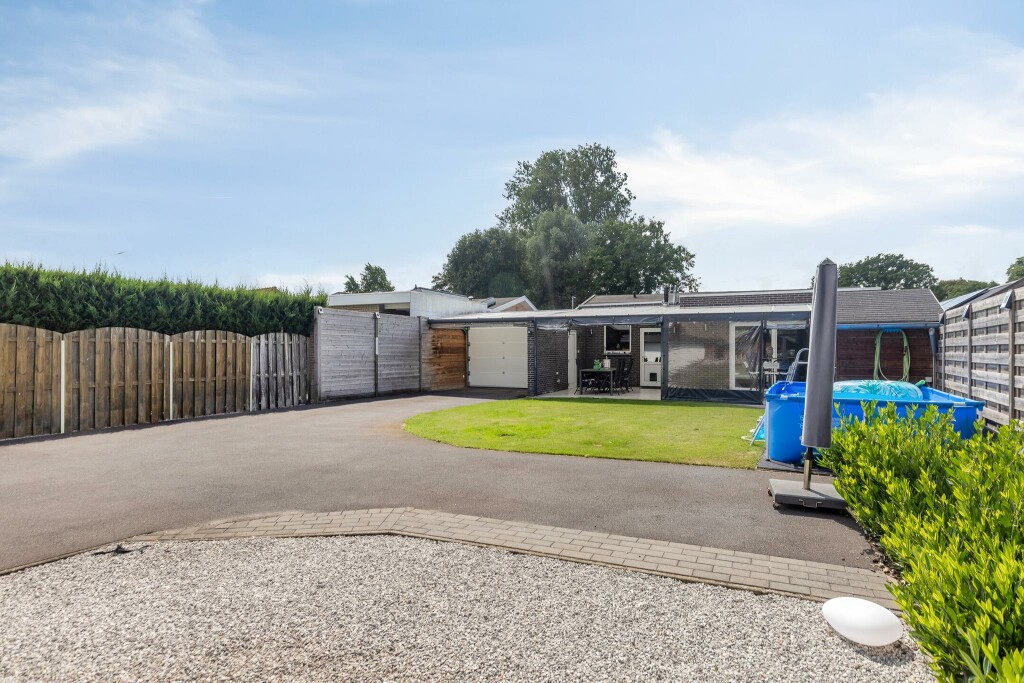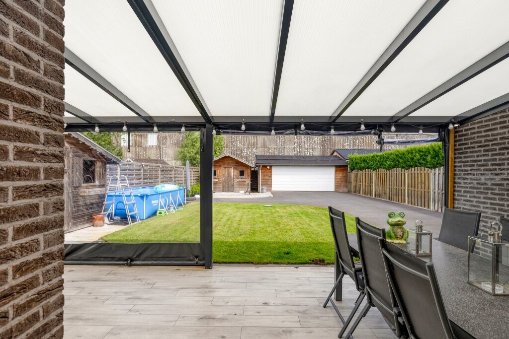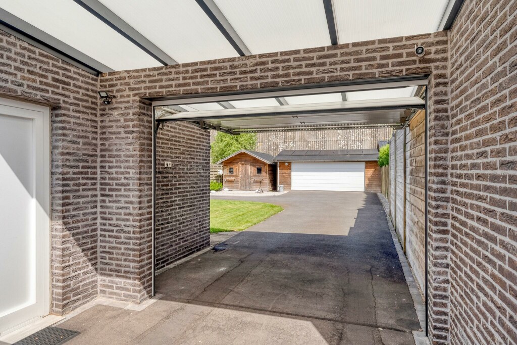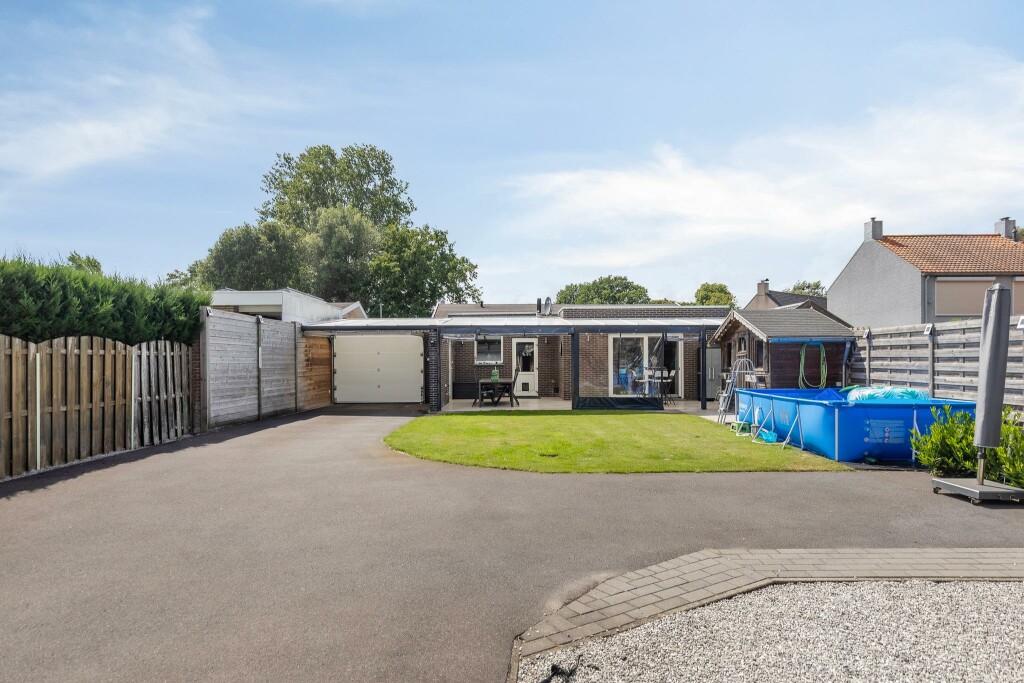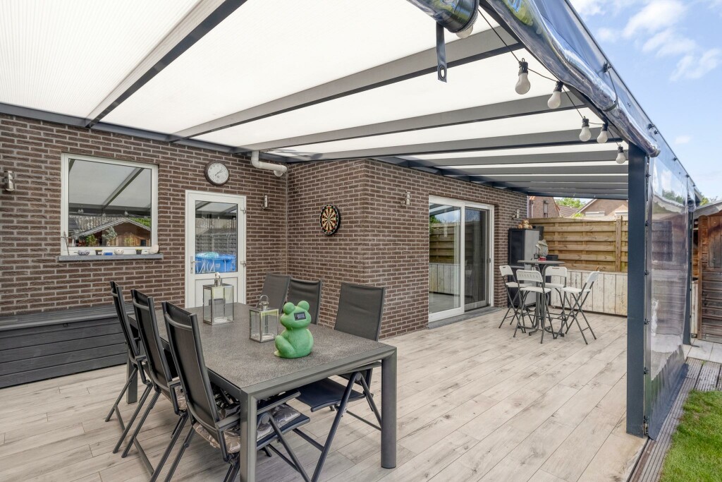 Buiten geniet u van een ruime, zonnige en onderhoudsvriendelijke tuin met volop privacy. De grote overkapping aan de woning zal u direct aanspreken. Achter op het perceel vindt u een ruime dubbele garage, bereikbaar via een brede, geasfalteerde oprit, die voldoende parkeerruimte biedt, op eigen terrein. Twee houten bergingen zorgen voor extra opslagruimte en maken het plaatje compleet.