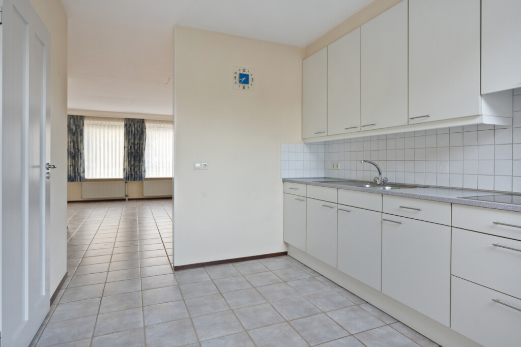 Bij binnenkomst via de hal valt meteen de praktische indeling op. Het toilet met fonteintje is handig geplaatst en vanuit de hal bereik je de woonkamer en de slaapkamer op de begane grond. De L-vormige woonkamer is licht en ruim en biedt een prettige leefruimte. Aansluitend vind je de halfopen keuken, met een ruime bergkast en toegang tot de achtertuin. De slaapkamer op de begane grond geeft directe toegang tot de badkamer, die voorzien is van een douche, ligbad en wastafel. Zo is wonen op de begane grond zowel praktisch als comfortabel.