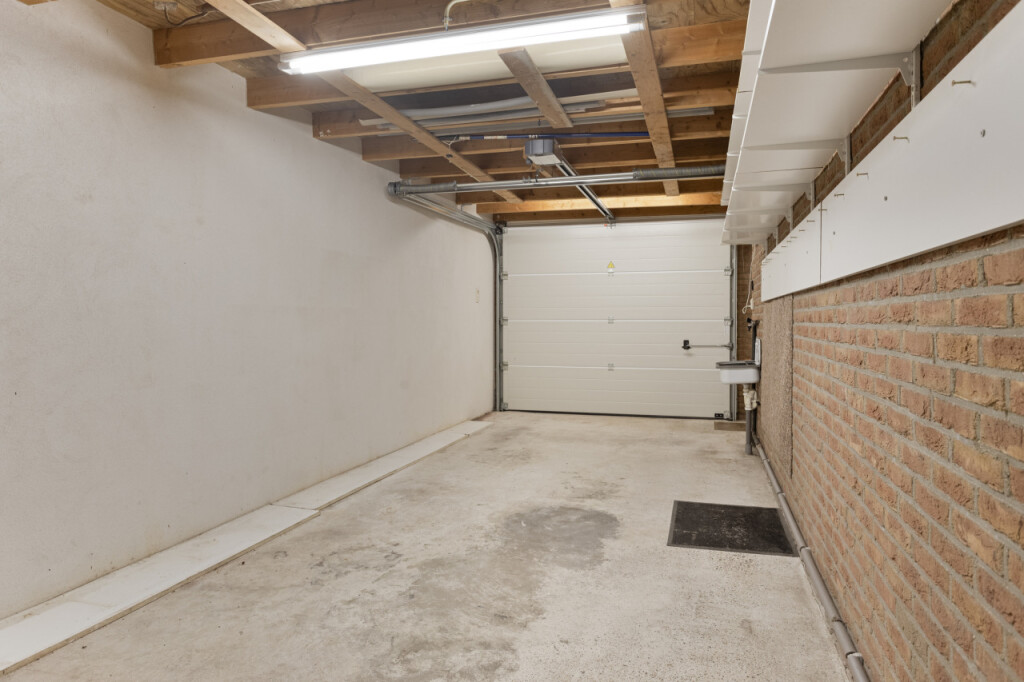 De zonnige tuin rondom de woning is een fijne plek om buiten te zijn. Met een netjes aangelegd terras en zorgvuldig onderhouden borders voelt het hier prettig en verzorgd. Dankzij de vrije achterom is de tuin makkelijk bereikbaar, en de ligging op het westen zorgt voor middag- en avondzon. De aangebouwde stenen garage en de berging daarachter bieden veel praktische ruimte, ideaal voor fietsen, gereedschap of opslag.