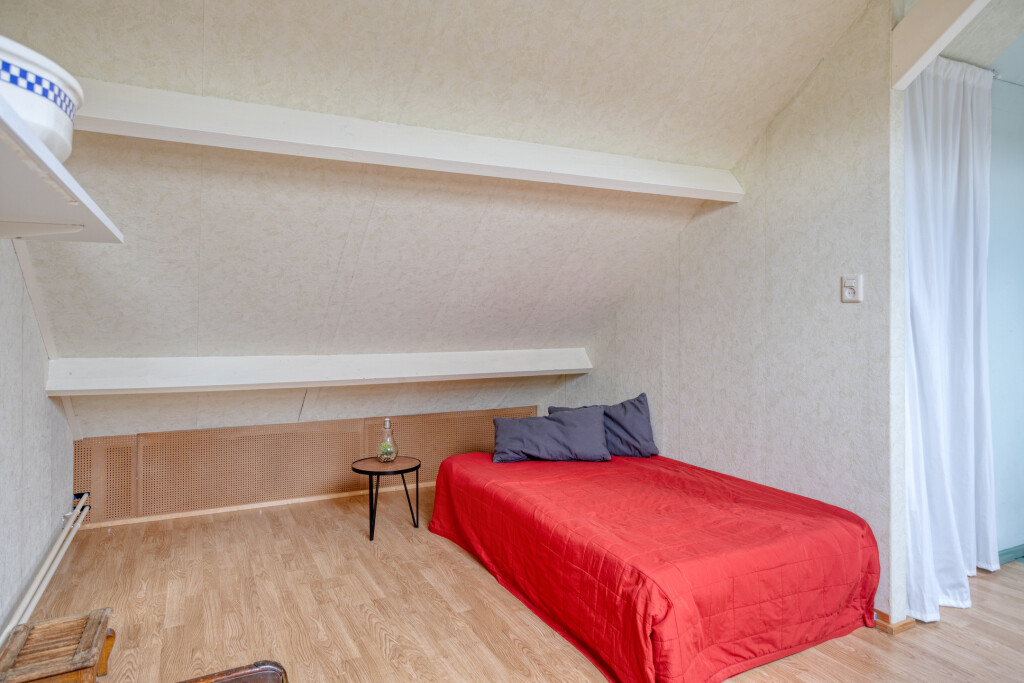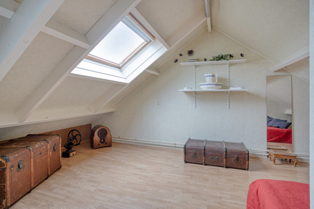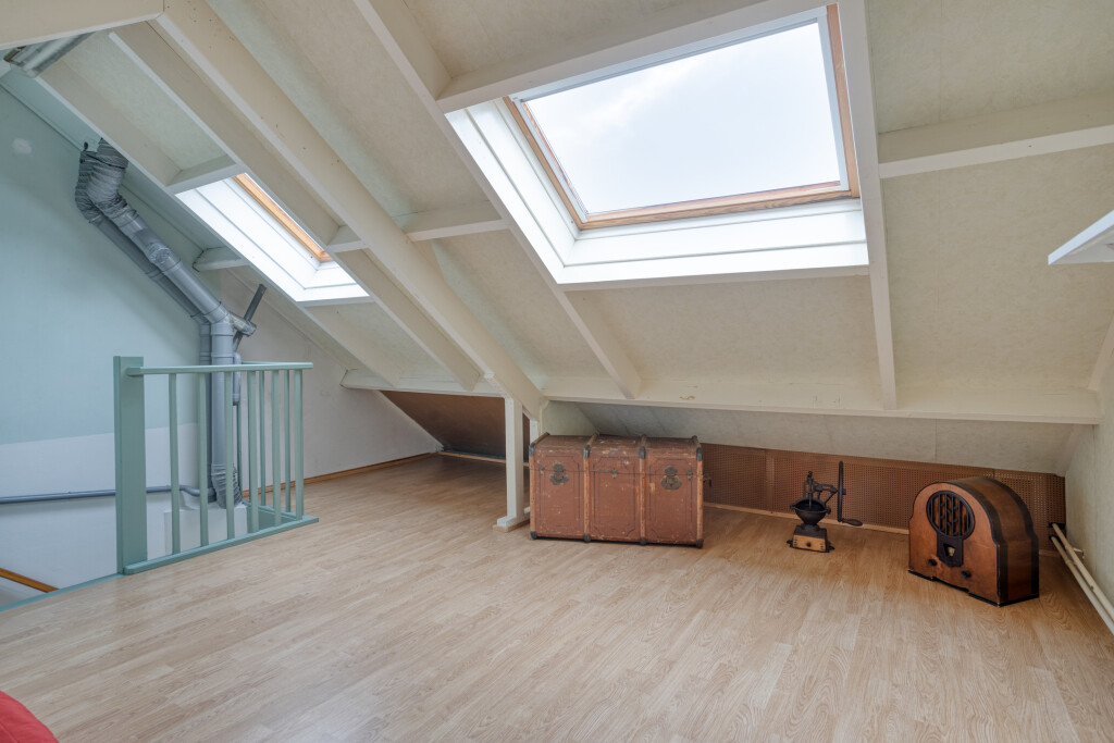 Via een vaste trap bereik je de tweede verdieping, waar zich een derde slaapkamer bevindt. Deze ruimte is netjes afgewerkt en beschikt over voldoende bergruimte. Ook de stookruimte is hier gesitueerd.