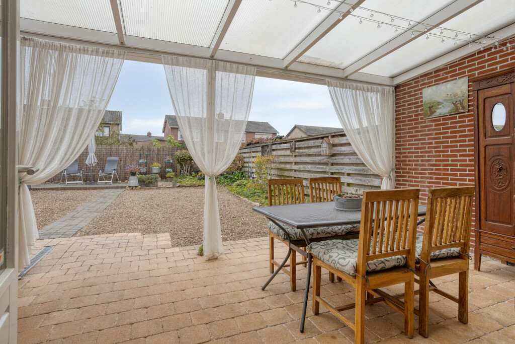 De achtertuin ligt op het zuiden, wat garant staat voor veel zonuren. Er is een gezellige overkapping direct aan de woning, waar je heerlijk beschut kunt zitten. De tuin is verzorgd aangelegd met nette borders, een houten berging en een vrije achterom. Dankzij het onderhoudsarme karakter heb je hier vooral tijd om te genieten. Ook de ruime garage is vanuit de tuin te bereiken en biedt plaats aan zowel de auto als extra opslag. Daarnaast is er een aansluiting voor witgoed aanwezig.