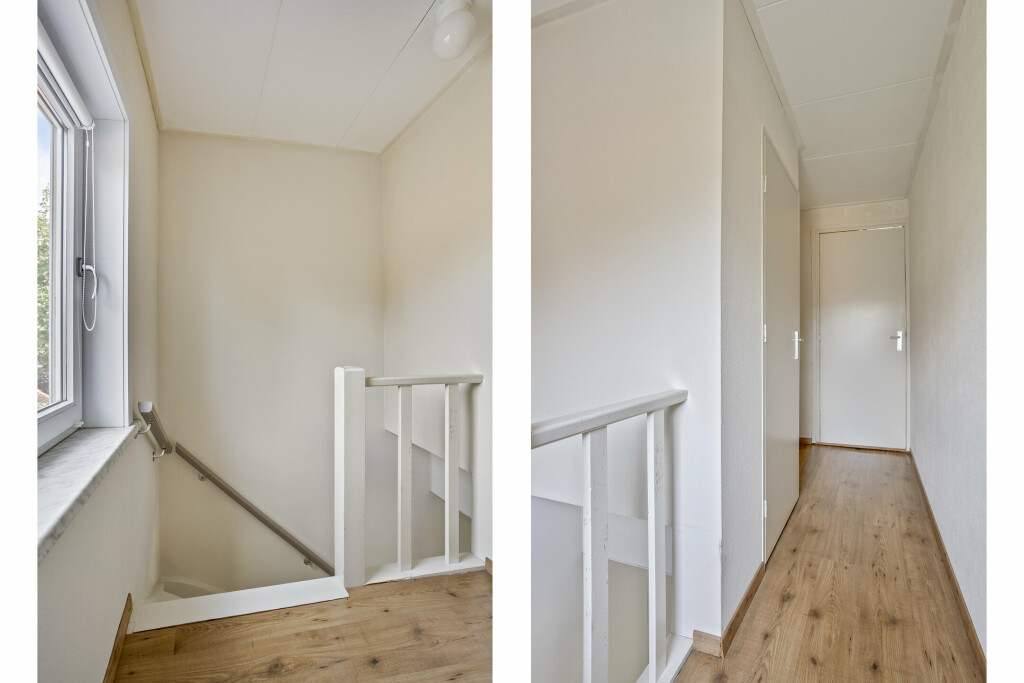 Op de eerste verdieping van de hoofdwoning vindt u een overloop met twee slaapkamers. Ook is hier een apart toilet aanwezig met een fonteintje, waardoor de verdieping praktisch en compleet is.