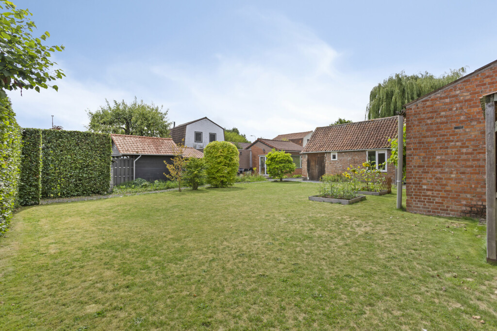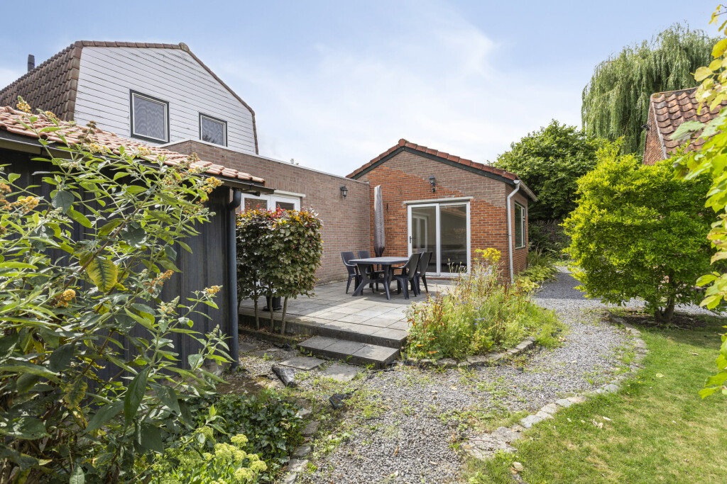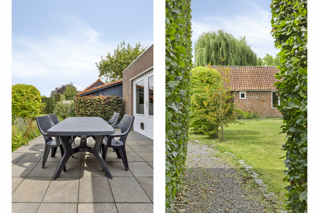 De tuin is een echte blikvanger van deze woning. Ruim en zonnig, gelegen op het oosten, beschikt het over een gezellig terras direct bij de woning, een net gazon en verzorgde borders voor planten en bloemen. Het is een plek om te ontspannen, te tuinieren of gezellig buiten te eten, terwijl de ligging rondom privacy biedt en de middag- en avondzon uitnodigt om van de buitenruimte te genieten.