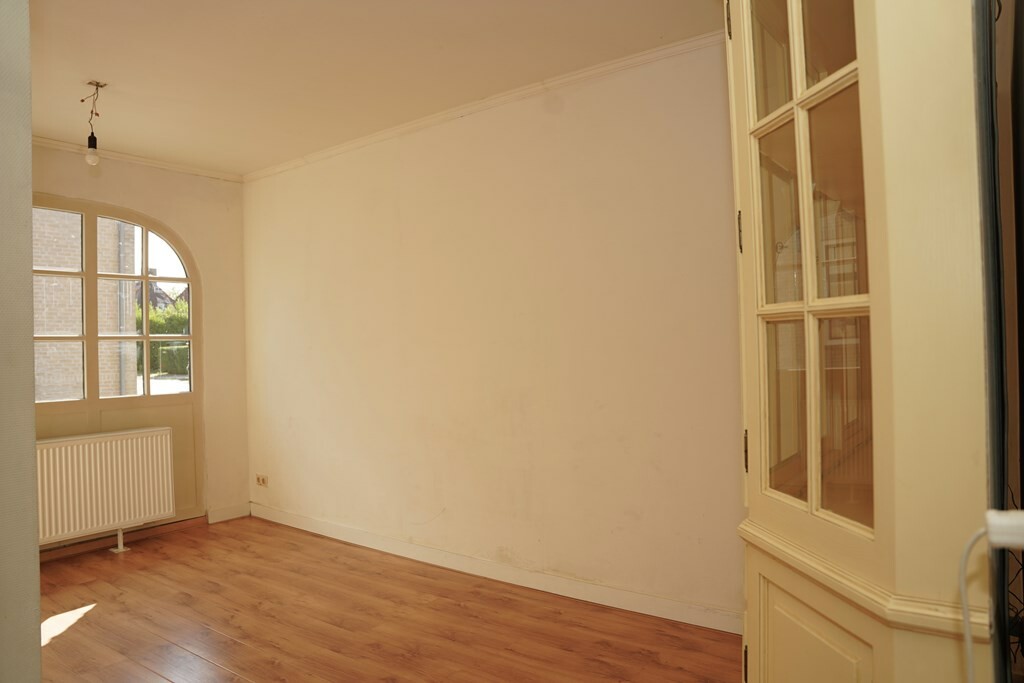 De voormalige garage doet nu dienst als eetkamer en heeft een leuk boograam naar het pittoreske straatje.