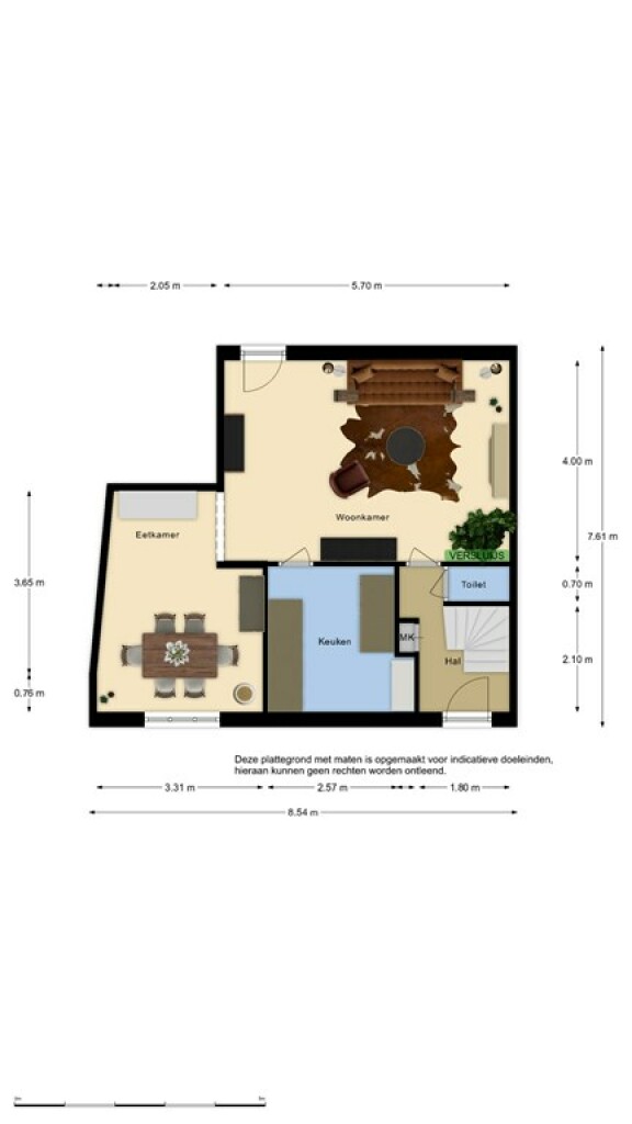 In de hal vind je het toilet, de meterkast en de trap naar de 1e verdieping.