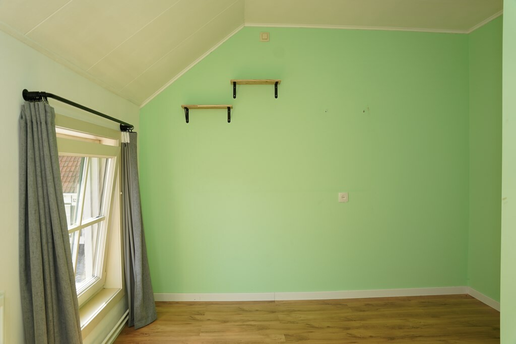 In slaapkamer 2 kun je gemakkelijk een 2-persoonsbed kwijt en is er een vaste kast. Ook deze kamer is voorzien van een laminaatvloer.