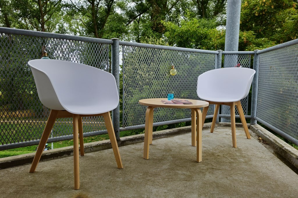De ruime en lichte woonkamer met sunscreens kijkt uit over de uitgestrekte Zeeuwse polders – een panorama dat elke dag rust geeft. Vanuit de kamer stap je direct het balkon op: jouw eigen buitenplek om te ontspannen met een kop koffie of een goed boek.