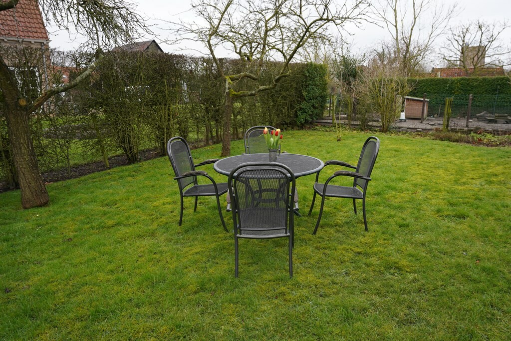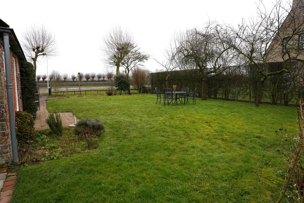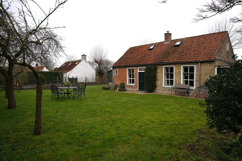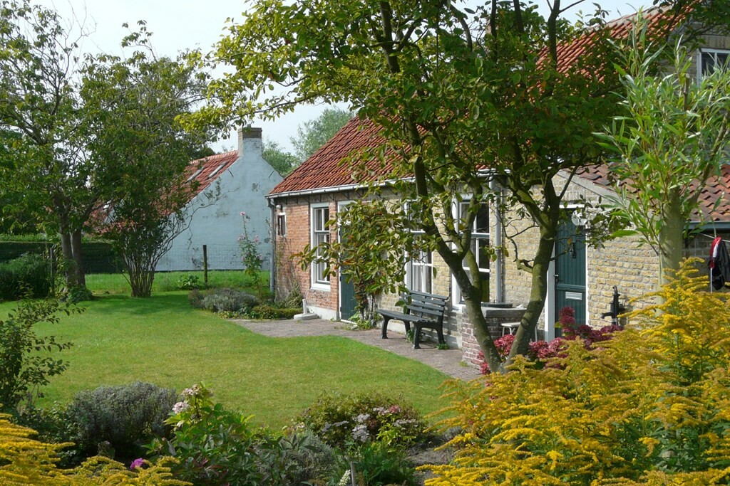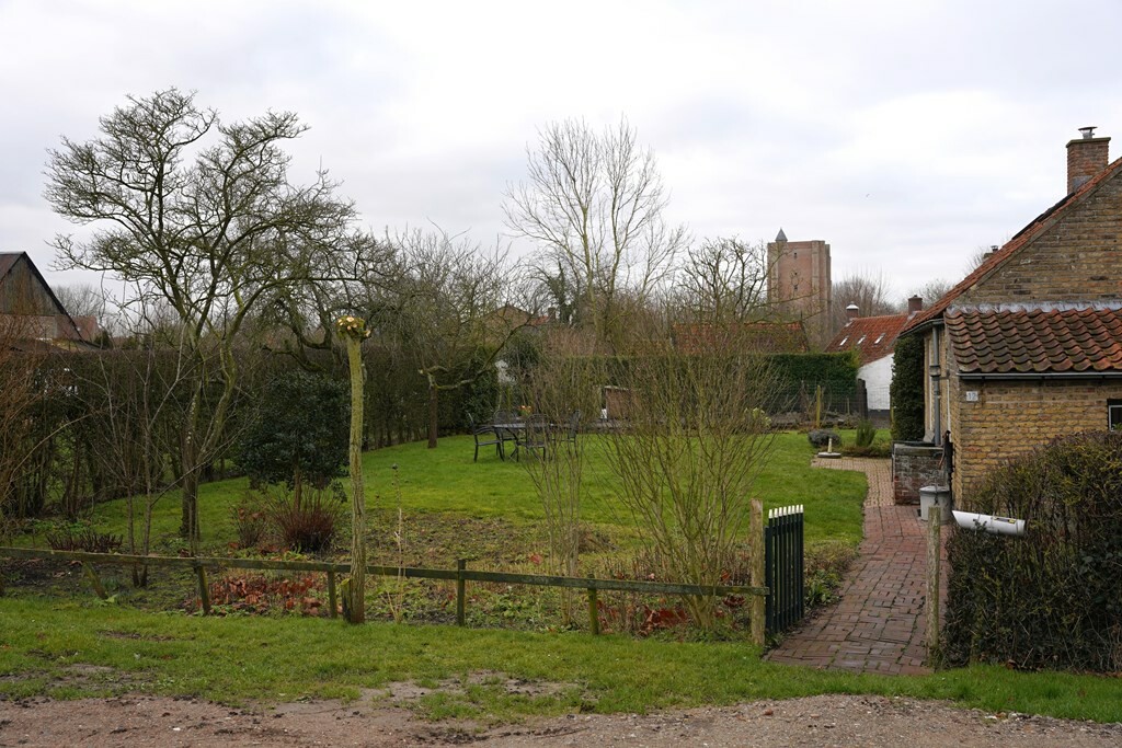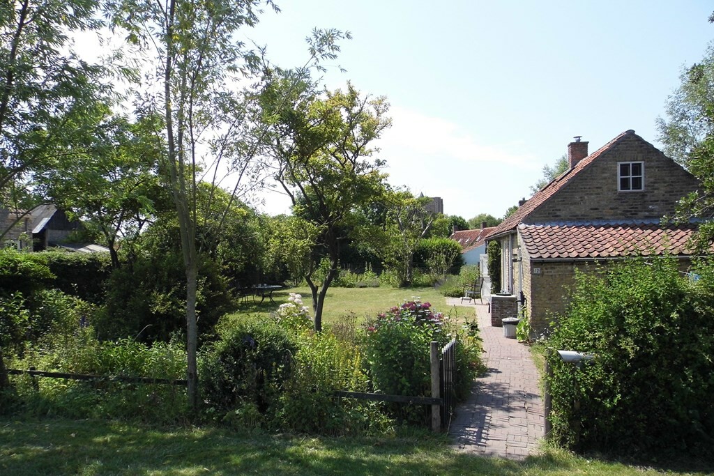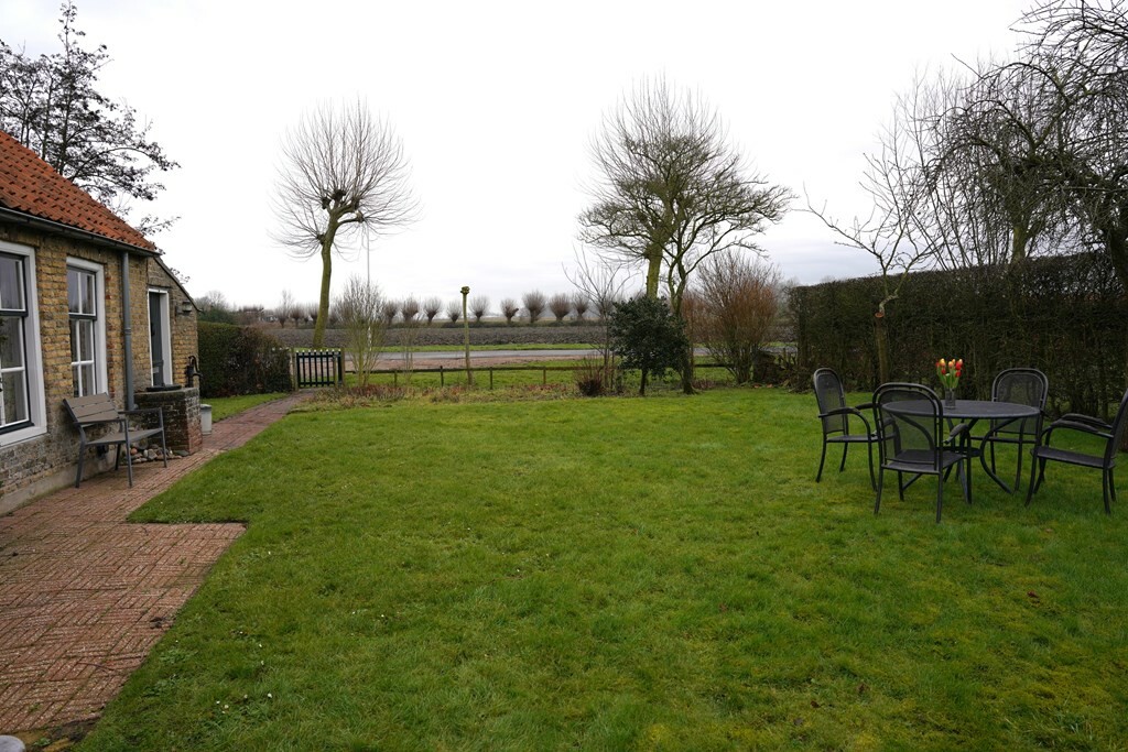 Rondom het huis is een grote cottage tuin met grasveld en een smal terras. Vanuit de tuin heb je een schitterend zicht op de oude 14e eeuwse kerktoren en de dijken met de typerende knotwilgen. De vele knotwilgen, welke ooit brandhout leverden, worden beschermd en in stand gehouden door de Stichting Het Zeeuws Landschap.