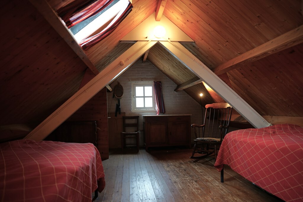 Er zijn 2 slaapkamers, allebei voorzien van een houten vloer en houten wanden.