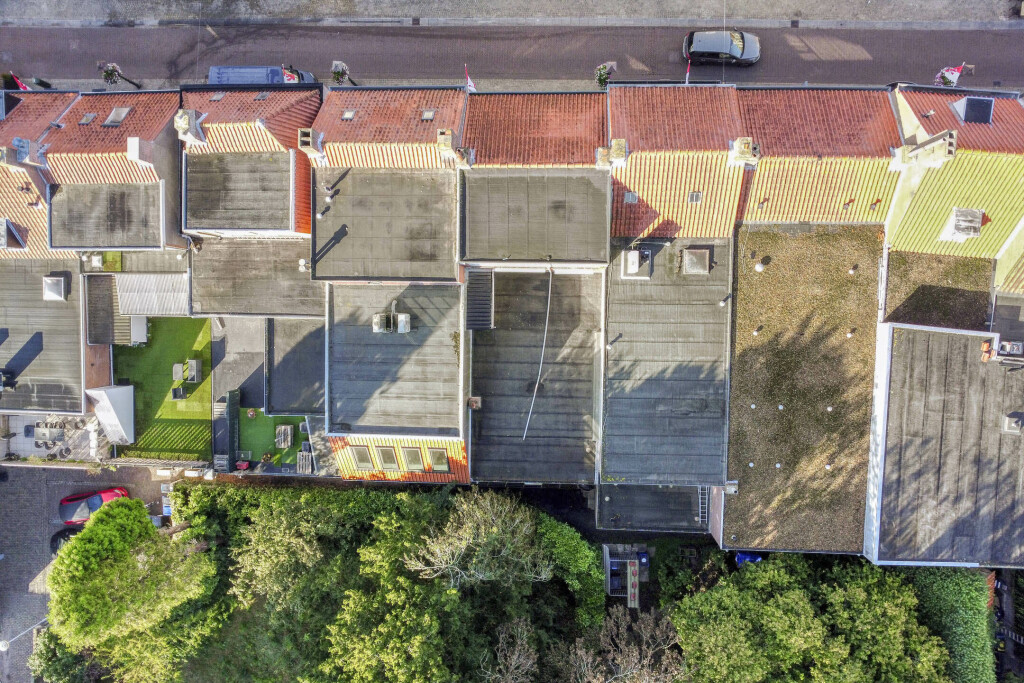 • Tweede verdieping: een ruime slaapkamer met vaste kast, een tweede kamer nog naar wens in te richten en een extra toilet. Het platte dak van deze verdieping is recent vernieuwd (2022).