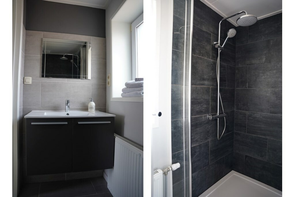 De overloop leidt naar drie slaapkamers, waarvan één momenteel als dressing wordt gebruikt. Alle kamers zijn voorzien van laminaatvloeren en bieden voldoende ruimte voor diverse woonwensen. De moderne badkamer (2018) is uitgerust met een stijlvol wastafelmeubel en een luxe regendouche. Een heerlijke plek om de dag te beginnen of af te sluiten.