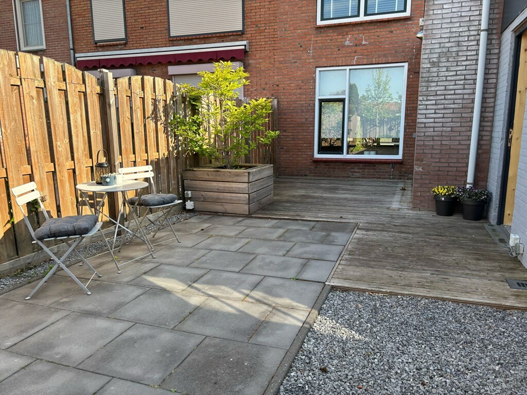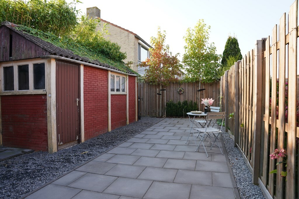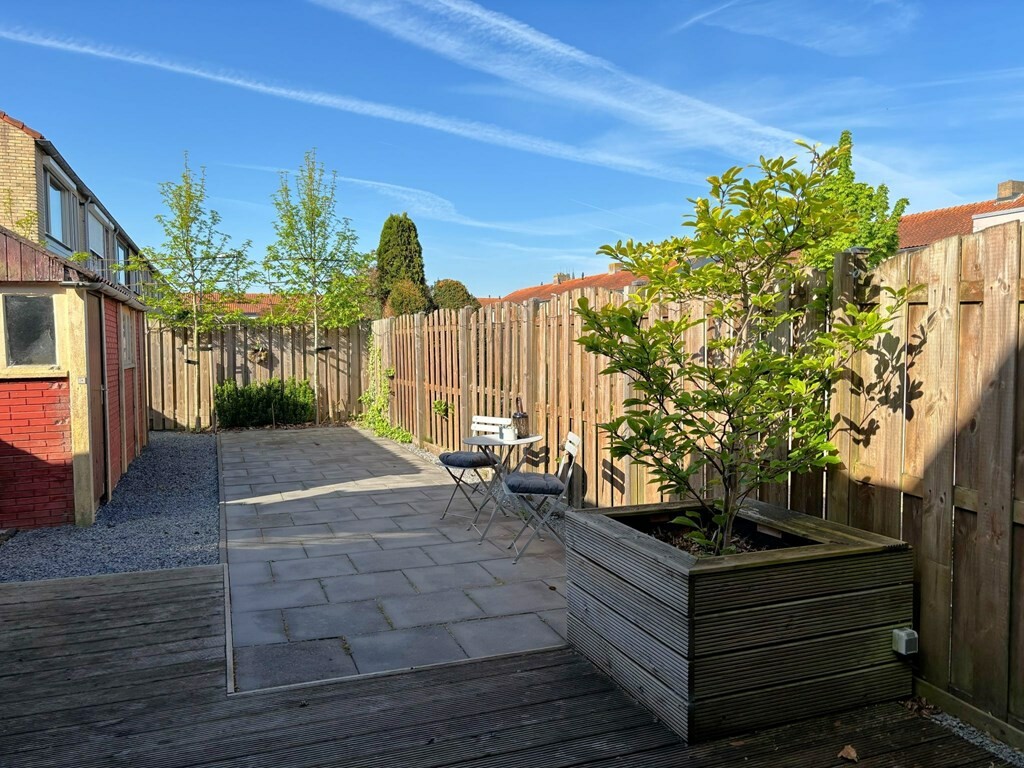 De volledig omheinde achtertuin op het zuidwesten is een heerlijke plek om te ontspannen. Onderhoudsarm en met een sfeervol vlonderterras, biedt deze tuin volop mogelijkheden voor een eigen invulling. De ruime schuur met elektra zorgt voor extra bergruimte.