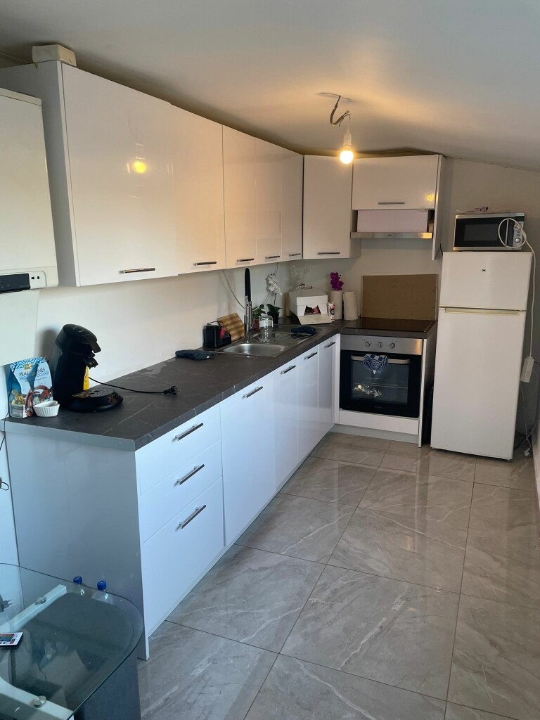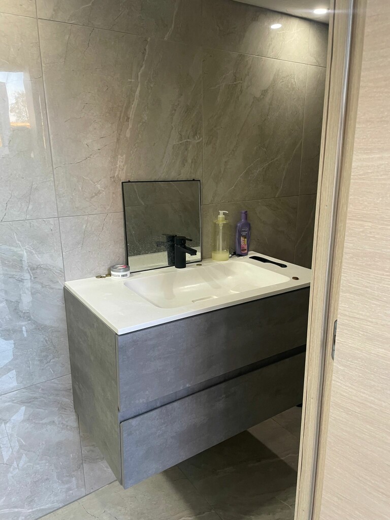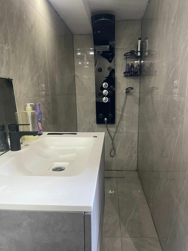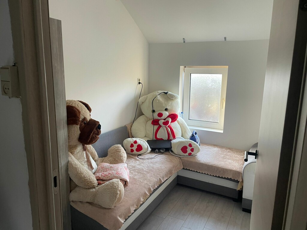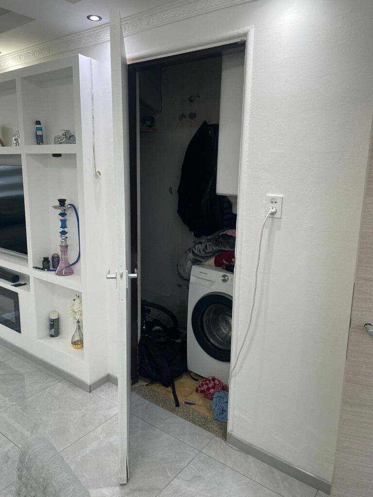 1ste verdieping: overloop, 2 slaapkamers, badkamer met wastafel, douche, toilet en aansluiting wasmachine.