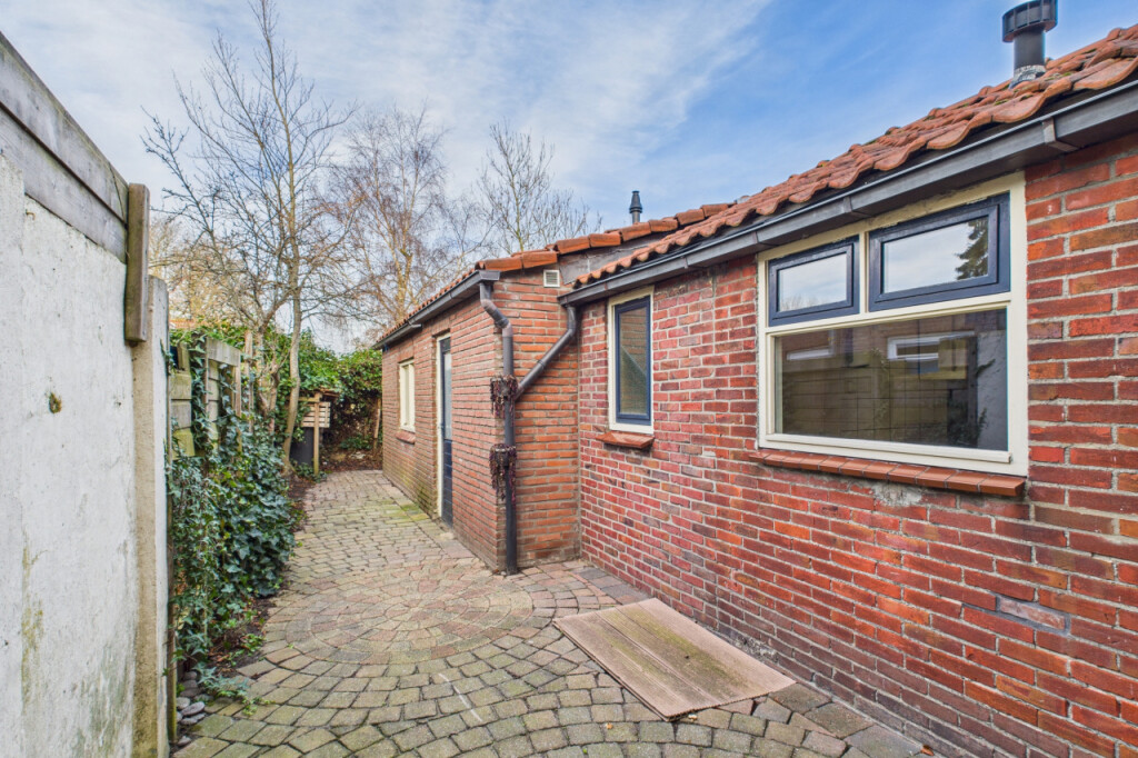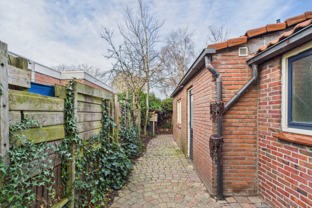 De achtertuin is grotendeels aangelegd met een terras en ligt op het noordwesten, waardoor je hier in de middag en avond heerlijk van de zon kunt genieten. De tuin beschikt over een eigen achterom en biedt voldoende ruimte om een fijne buitenplek te creëren. De garage zorgt daarnaast voor extra bergruimte of een plek voor de auto of fietsen.