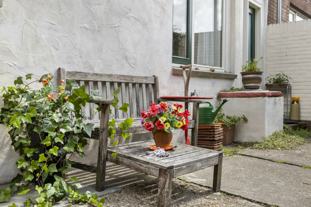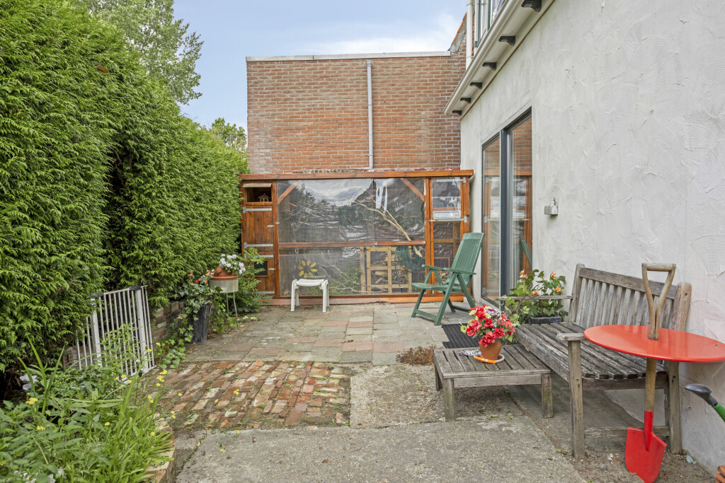 De tuin, gelegen op het zuidwesten, is een fijne plek om de middag- en avondzon mee te pakken. Dankzij het overzichtelijke formaat blijft het onderhoud beperkt, terwijl er toch voldoende plek is voor een gezellig terras of wat beplanting om het geheel extra sfeer te geven. Achter in de tuin staan tevens een kunststof berging en een houten volière.