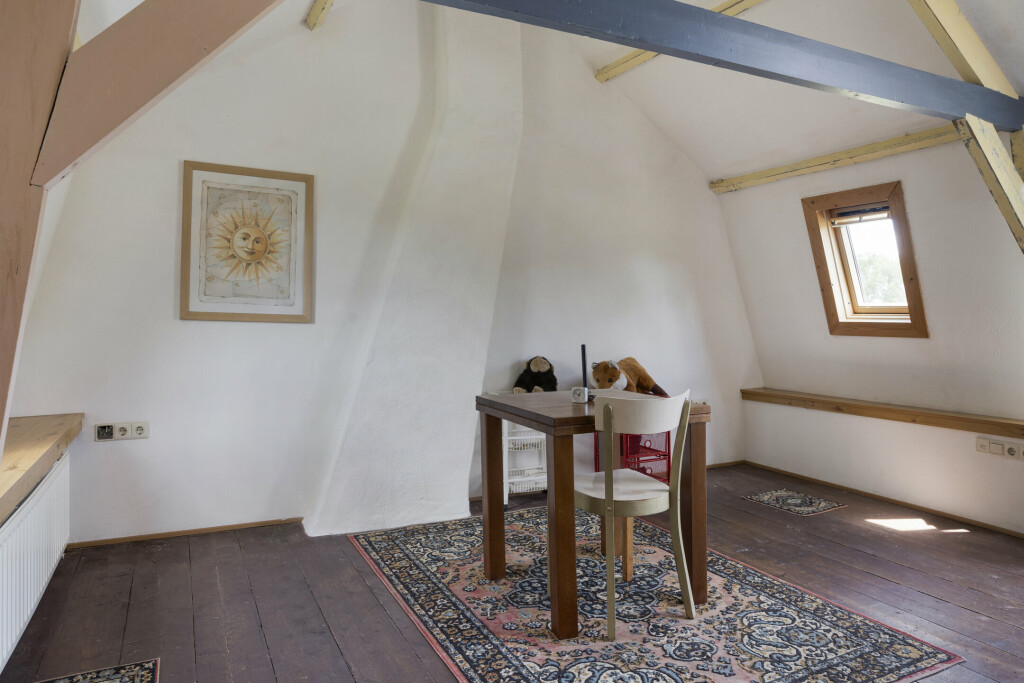 De tweede verdieping bestaat uit deze ruime vliering, ideaal voor het bewaren van spullen die je niet dagelijks nodig hebt.