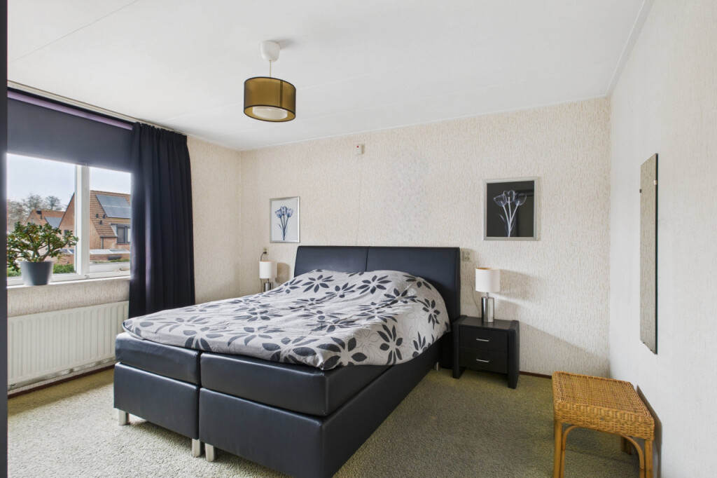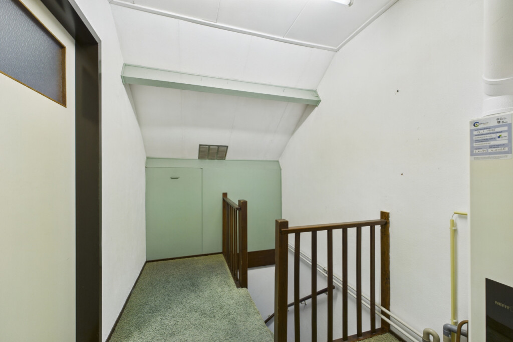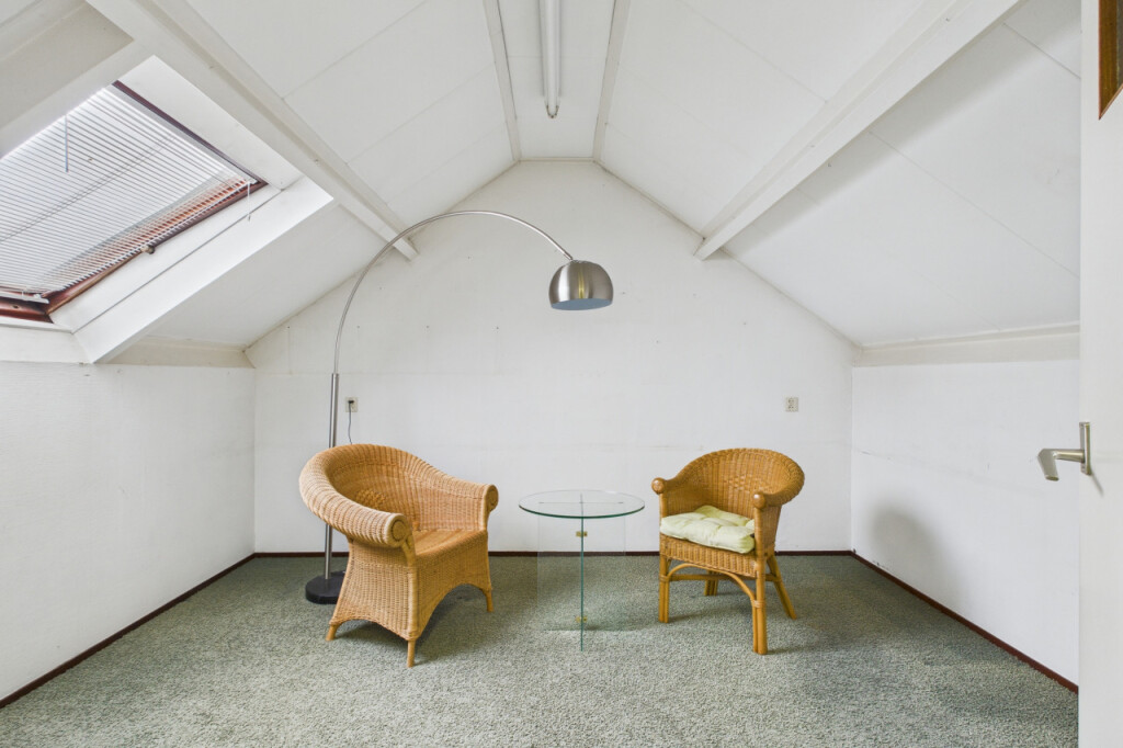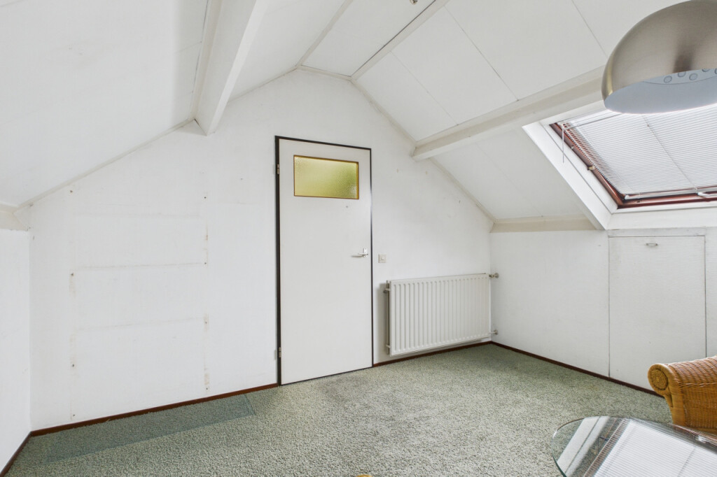 De tweede verdieping biedt nog meer ruimte. Op de overloop vind je de cv-opstelling en extra bergruimte. Aansluitend is hier de ruime 4e slaapkamer, voorzien van een Velux dakraam dat zorgt voor veel lichtinval. Deze verdieping is uitstekend geschikt als extra slaapkamer, werkruimte of hobbykamer.